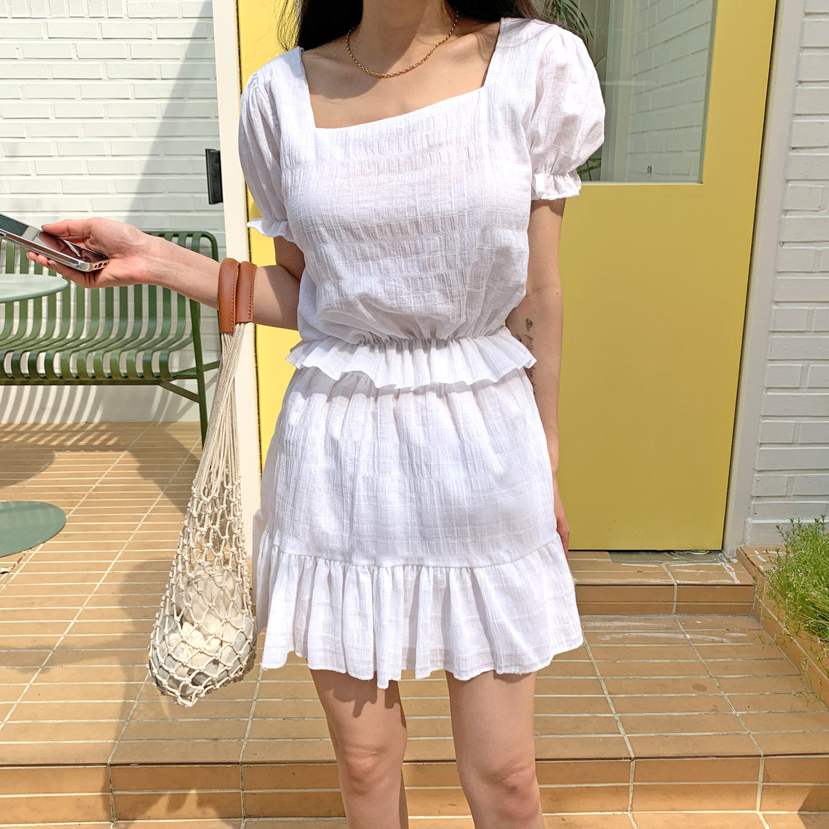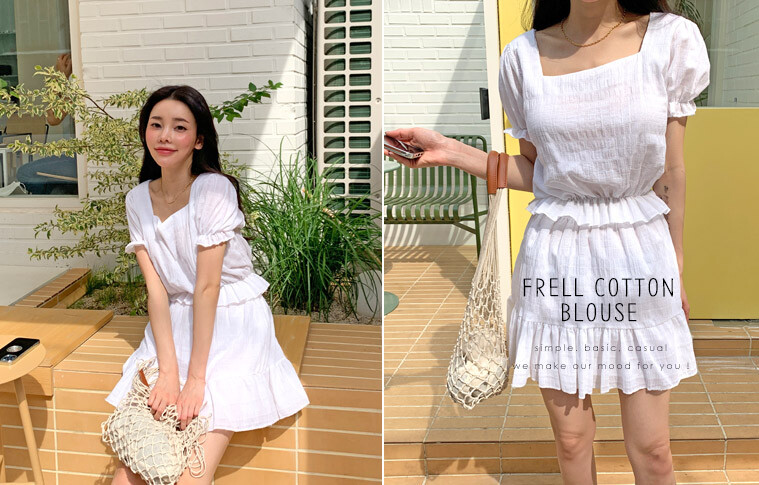 여자 봄 여름 하객 화이트 셔츠 스퀘어 프릴 코튼 반팔 블라우스