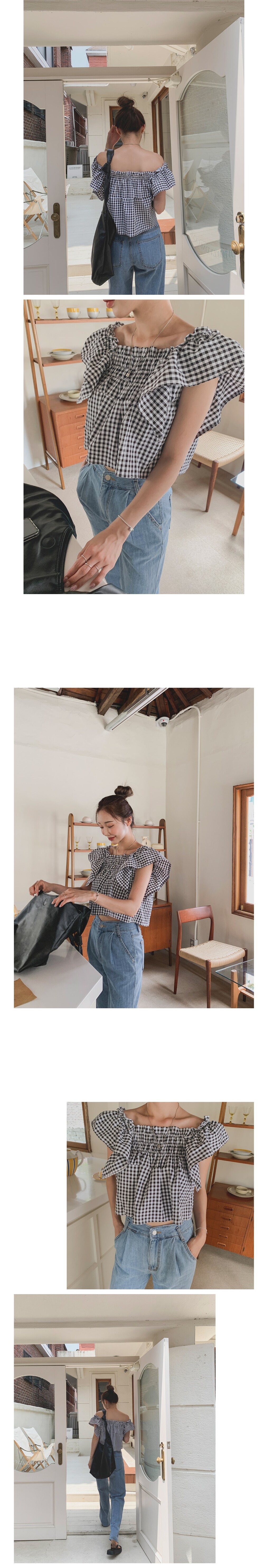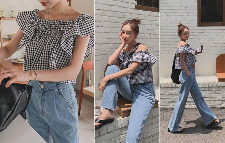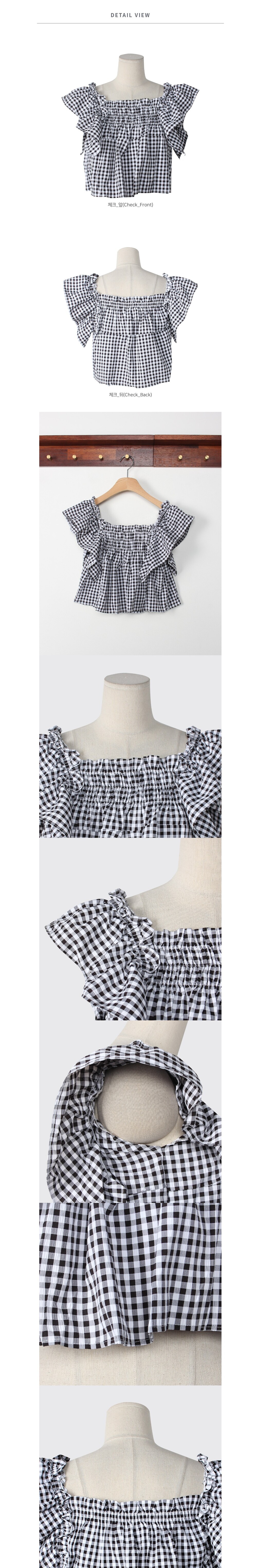 여성 체크 패턴 프릴 블라우스 봄 여름 가을 블랙 꾸안꾸 여자 데일리룩