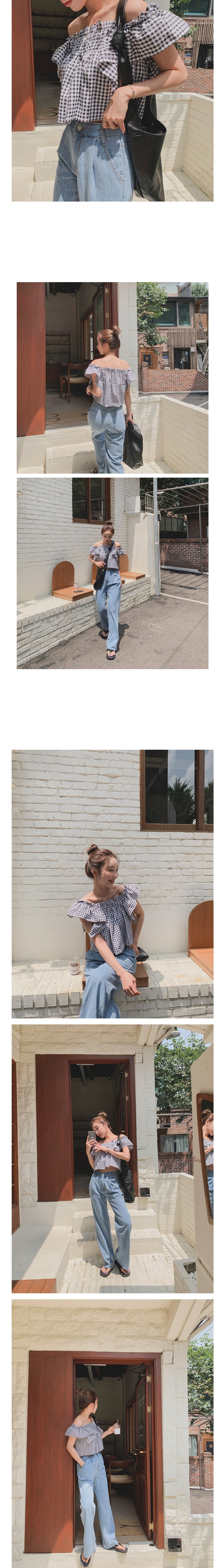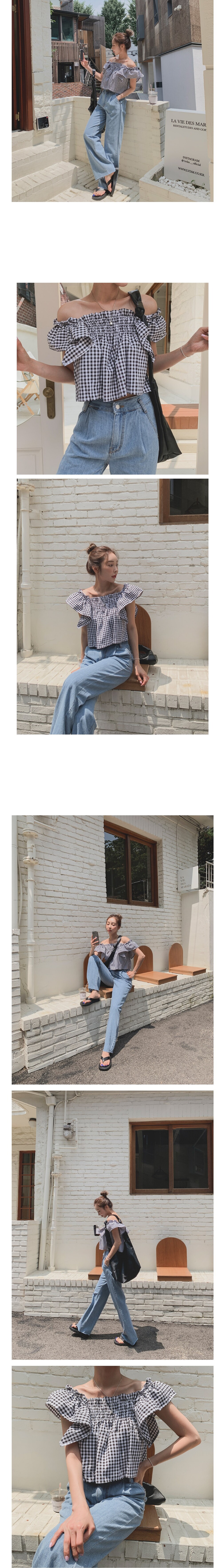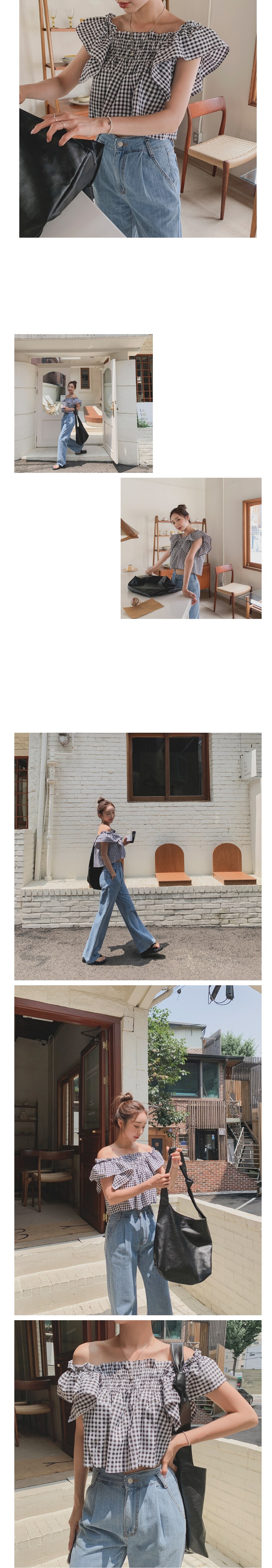 여성 체크 패턴 프릴 블라우스 봄 여름 가을 블랙 꾸안꾸 여자 데일리룩