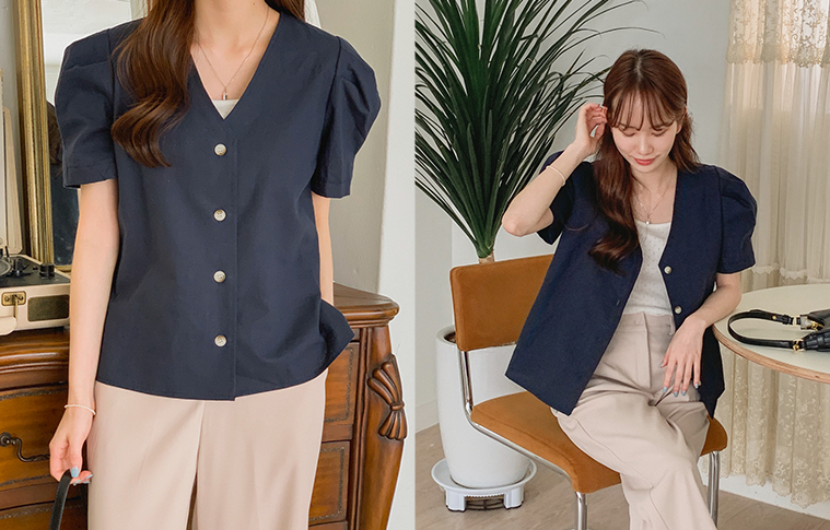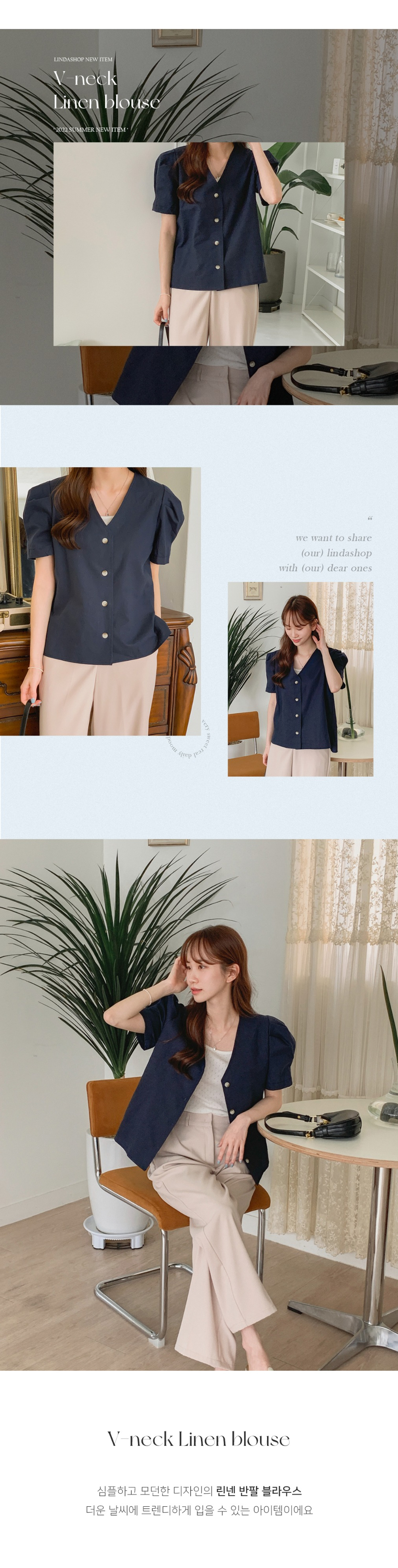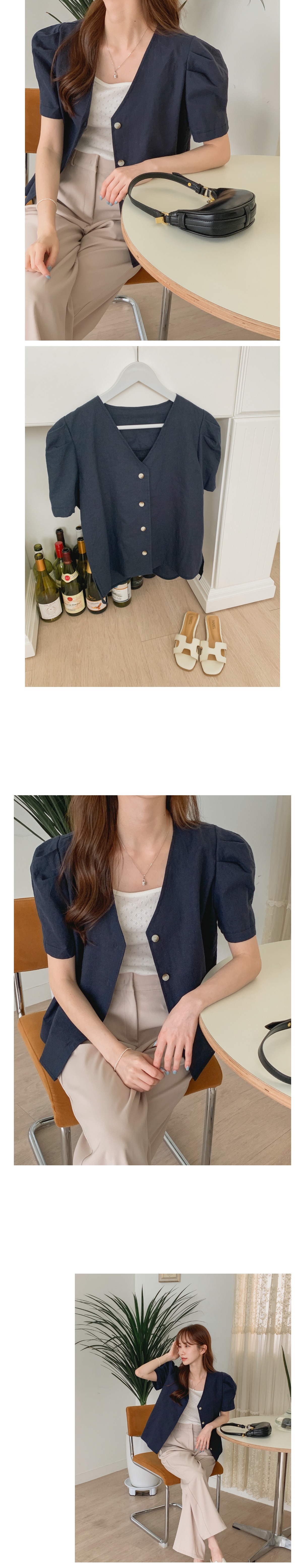 린넨 브이넥 자켓 여름 반팔 블라우스 정장 러블리