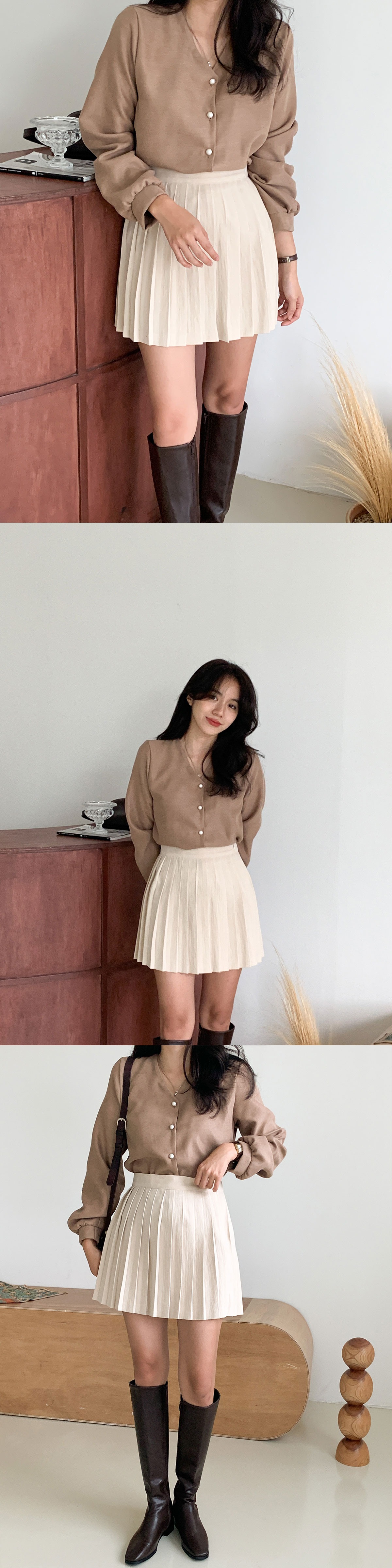 여성 브이넥 진주 버튼 가을 이너 레이어드 블라우스