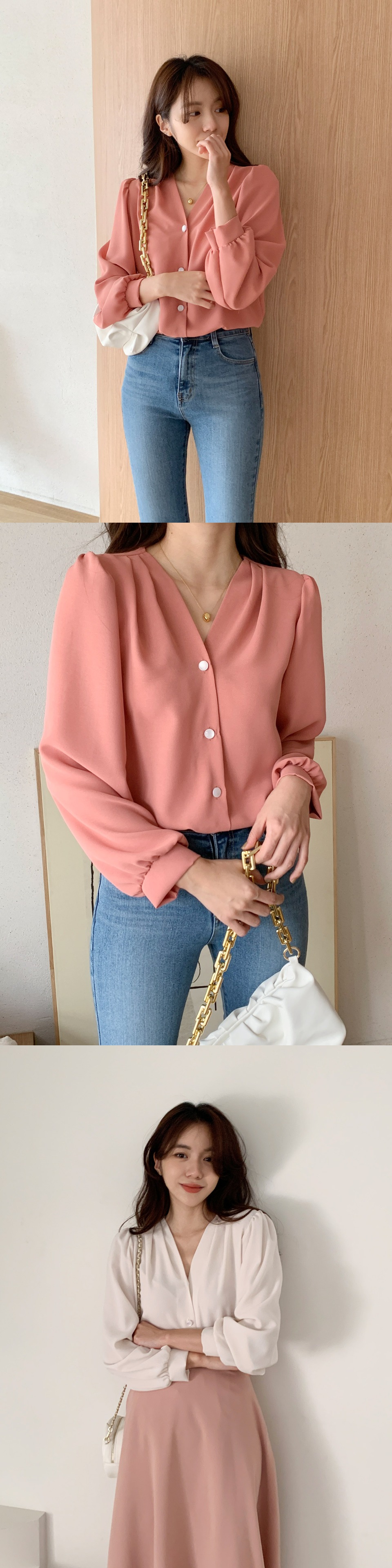 셔링블라우스 브이넥 러블리 이너 여성 봄 러블리 블라우스