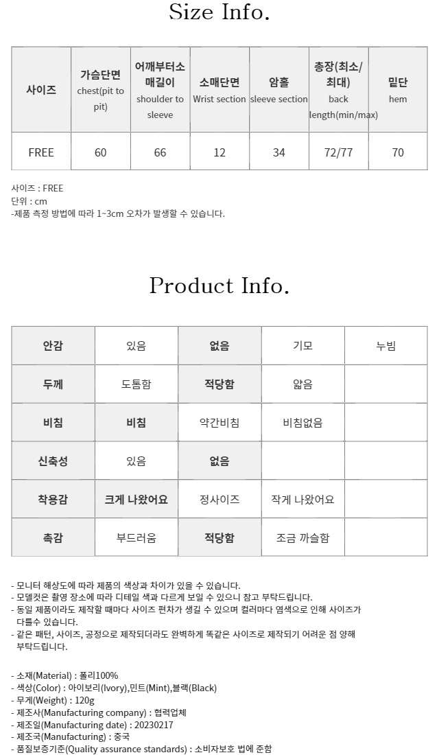 - 상품 하자, 오배송의 경우 수령일로부터 7일 이내 고객센터 접수 후 교환∙반품이 가능합니다. (교환/반품비 무료)