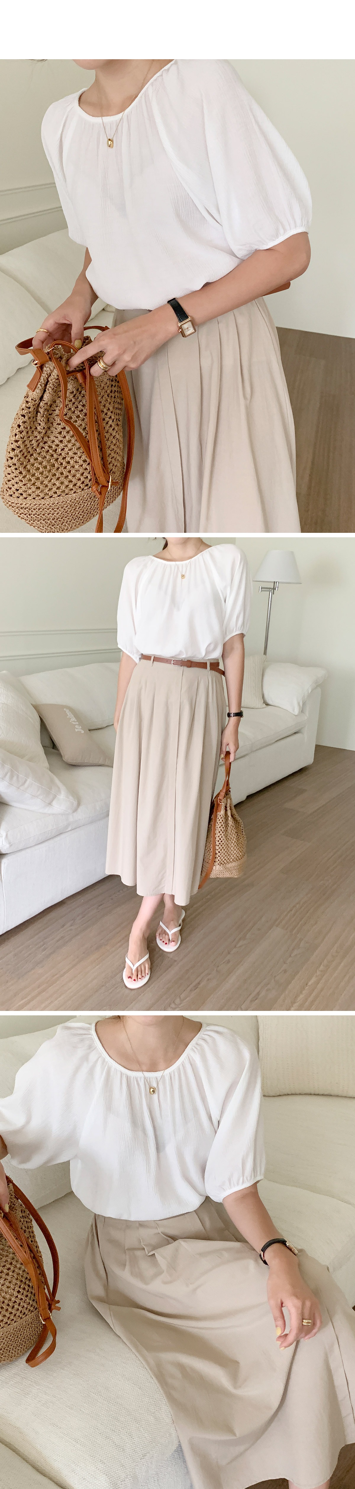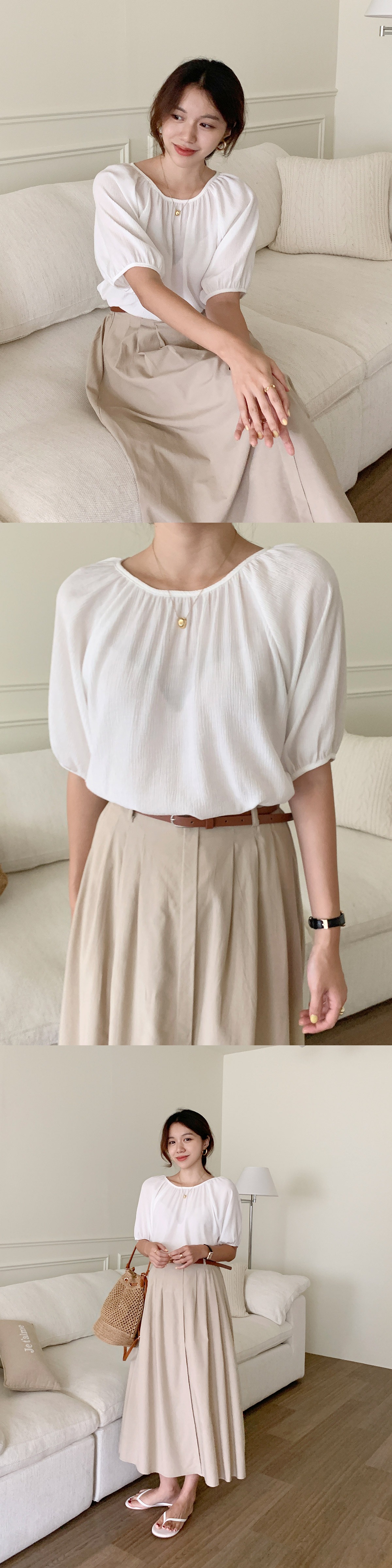 시스루블라우스 라운드넥 나그랑 무지 여성 반팔 블라우스