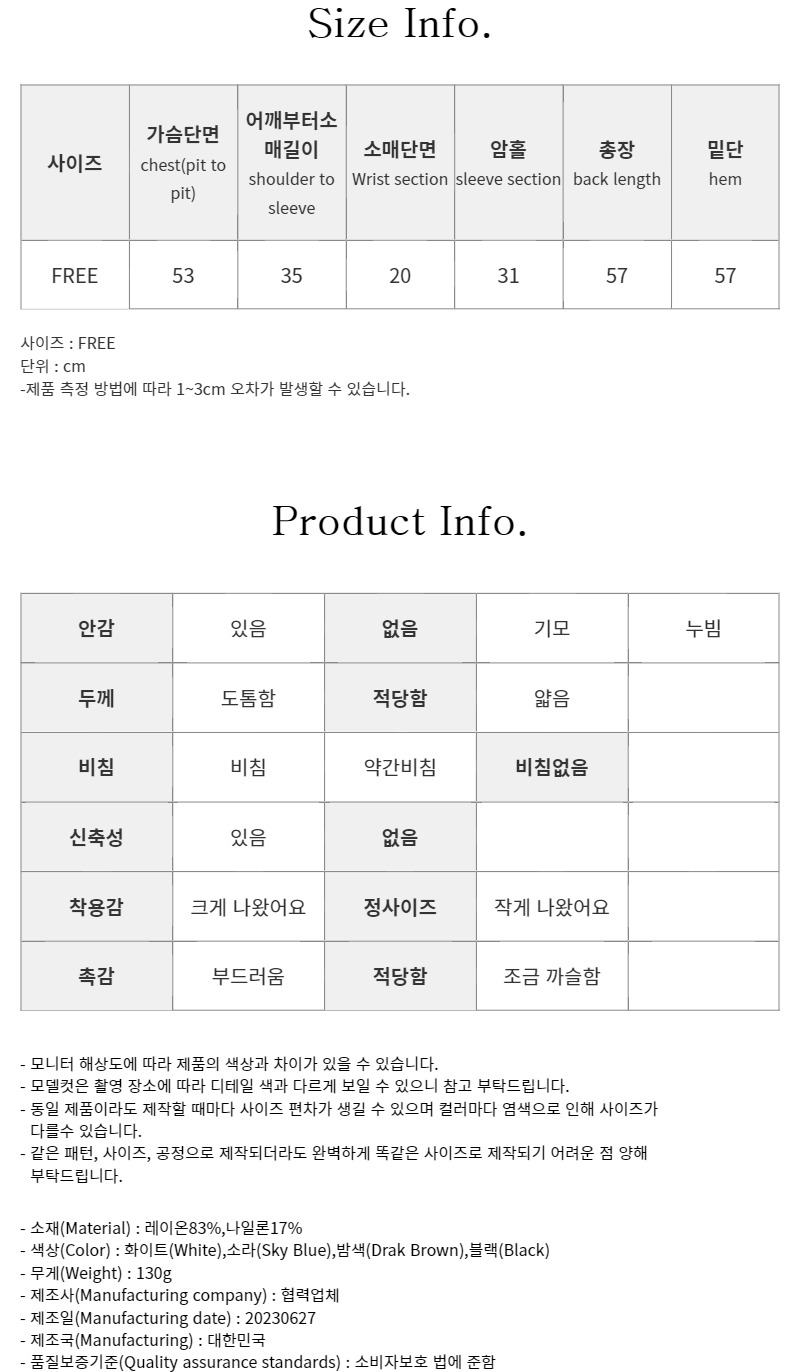- 상품 하자, 오배송의 경우 수령일로부터 7일 이내 고객센터 접수 후 교환∙반품이 가능합니다. (교환/반품비 무료)