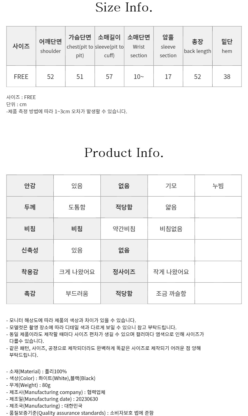 - 상품 하자, 오배송의 경우 수령일로부터 7일 이내 고객센터 접수 후 교환∙반품이 가능합니다. (교환/반품비 무료)