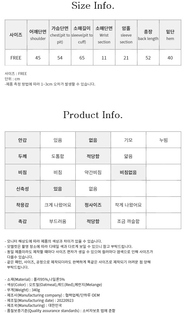 오트밀, 레드, 메란지 / FREE 사이즈 착용했습니다^^