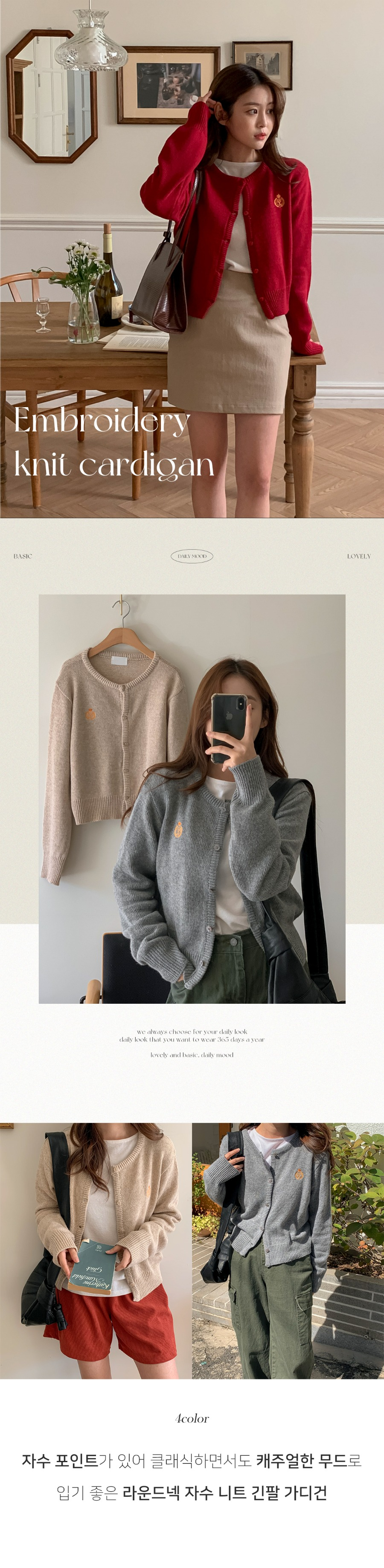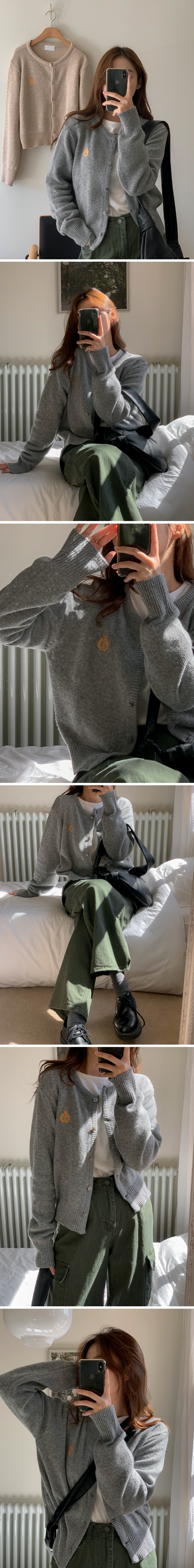 라운드넥 자수 가을 겨울 여성 긴팔 니트 가디건 아우터