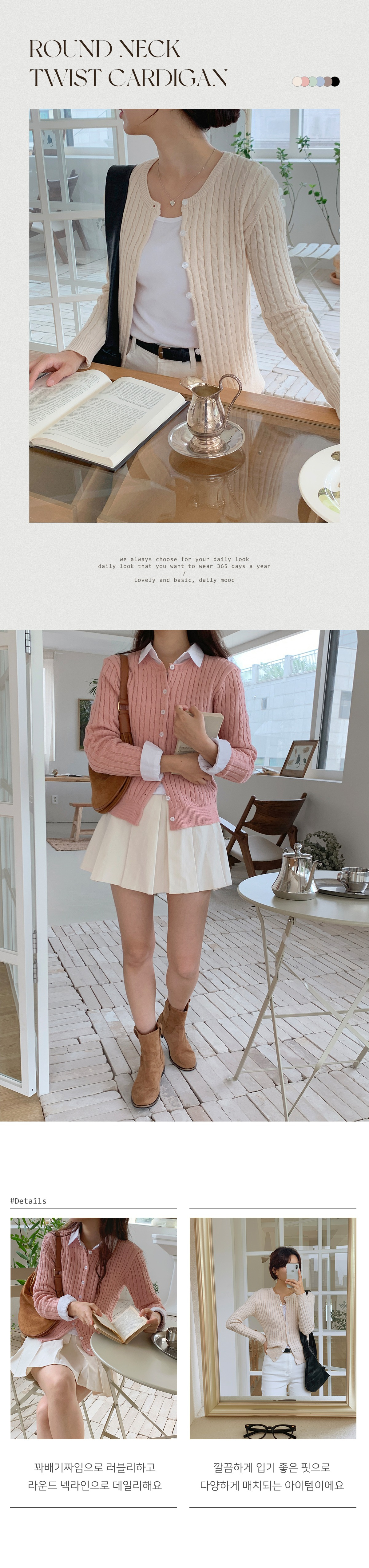 꽈배기가디건 니트가디건 케이블 라운드 레이어드 슬림 가디건