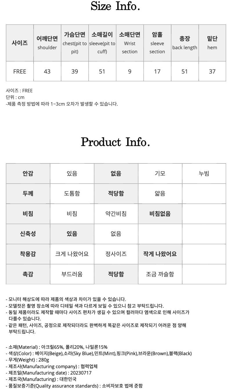 베이지, 핑크 / Free 사이즈 착용했습니다^^
