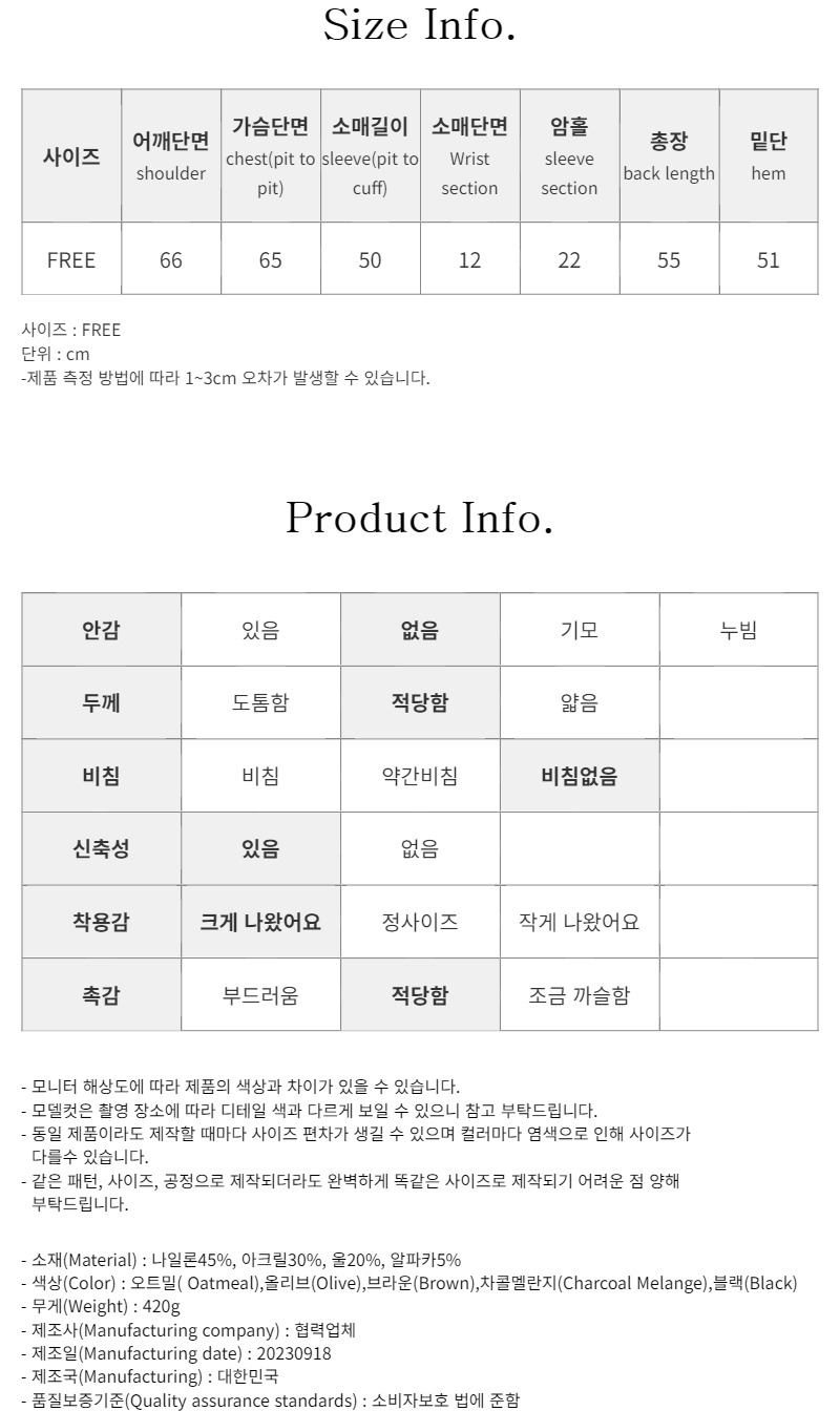 오트밀, 차콜멜란지 / Free 사이즈 착용했습니다^^