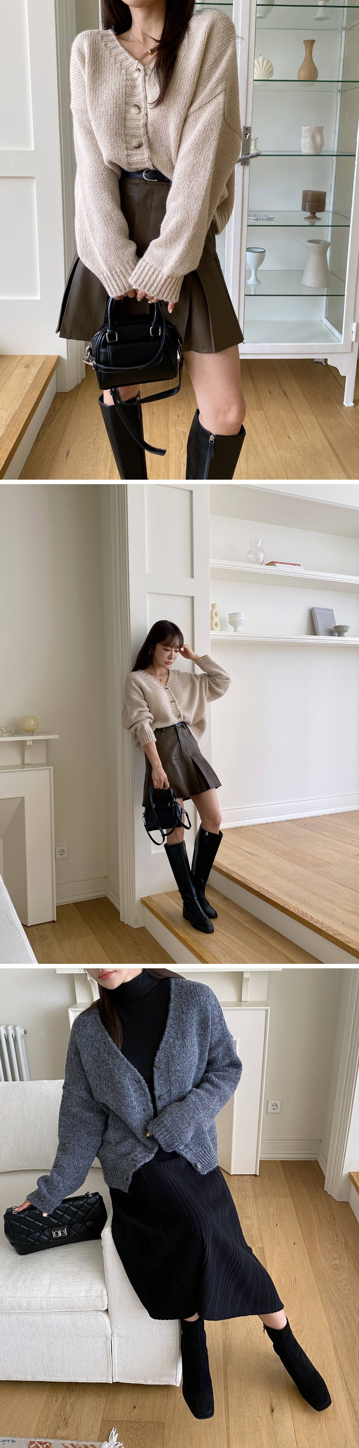 알파카가디건 브이넥가디건 루즈핏 가을겨울 레이어드 가디건