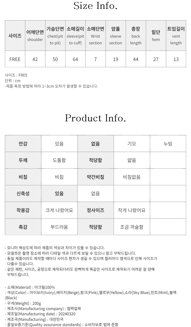 민트 / Free 사이즈 착용했습니다^^