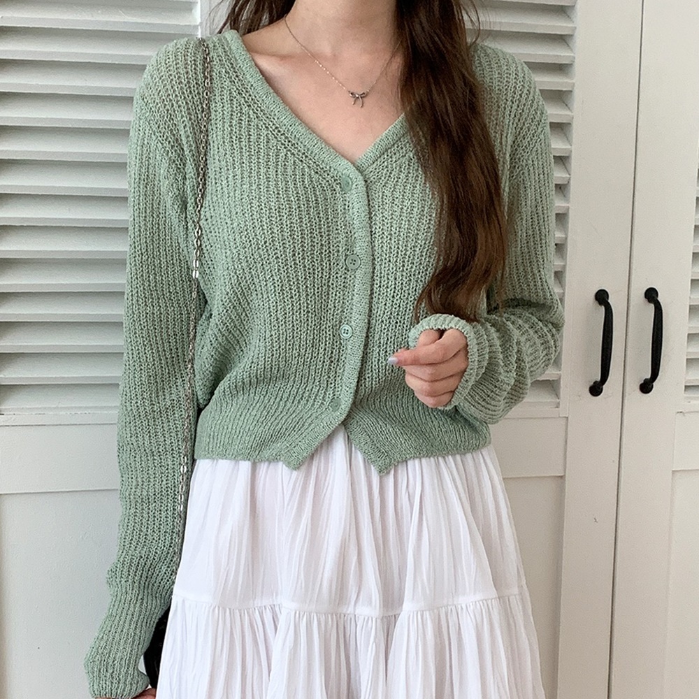 브이넥 크롭 니트 가디건입니다