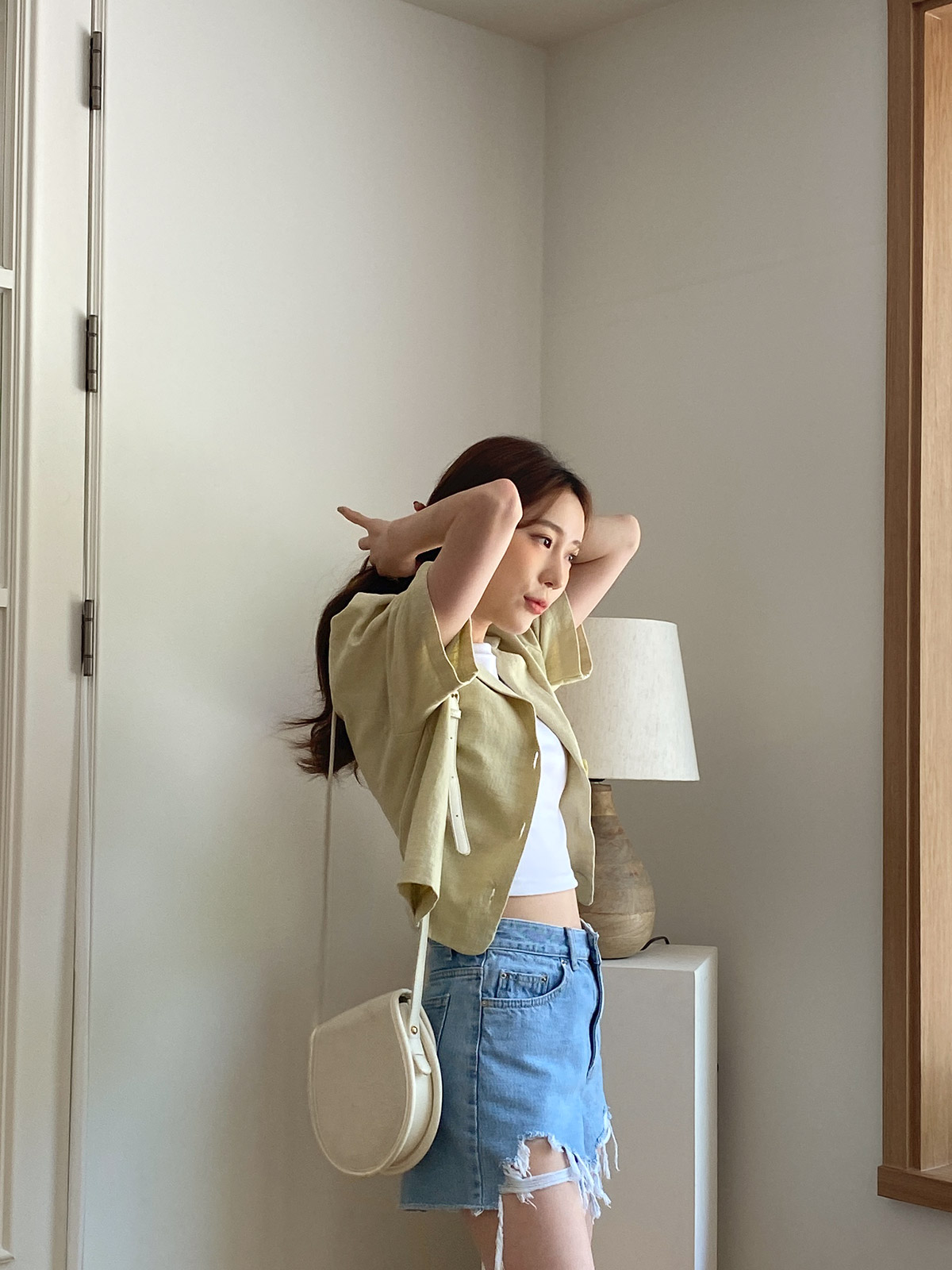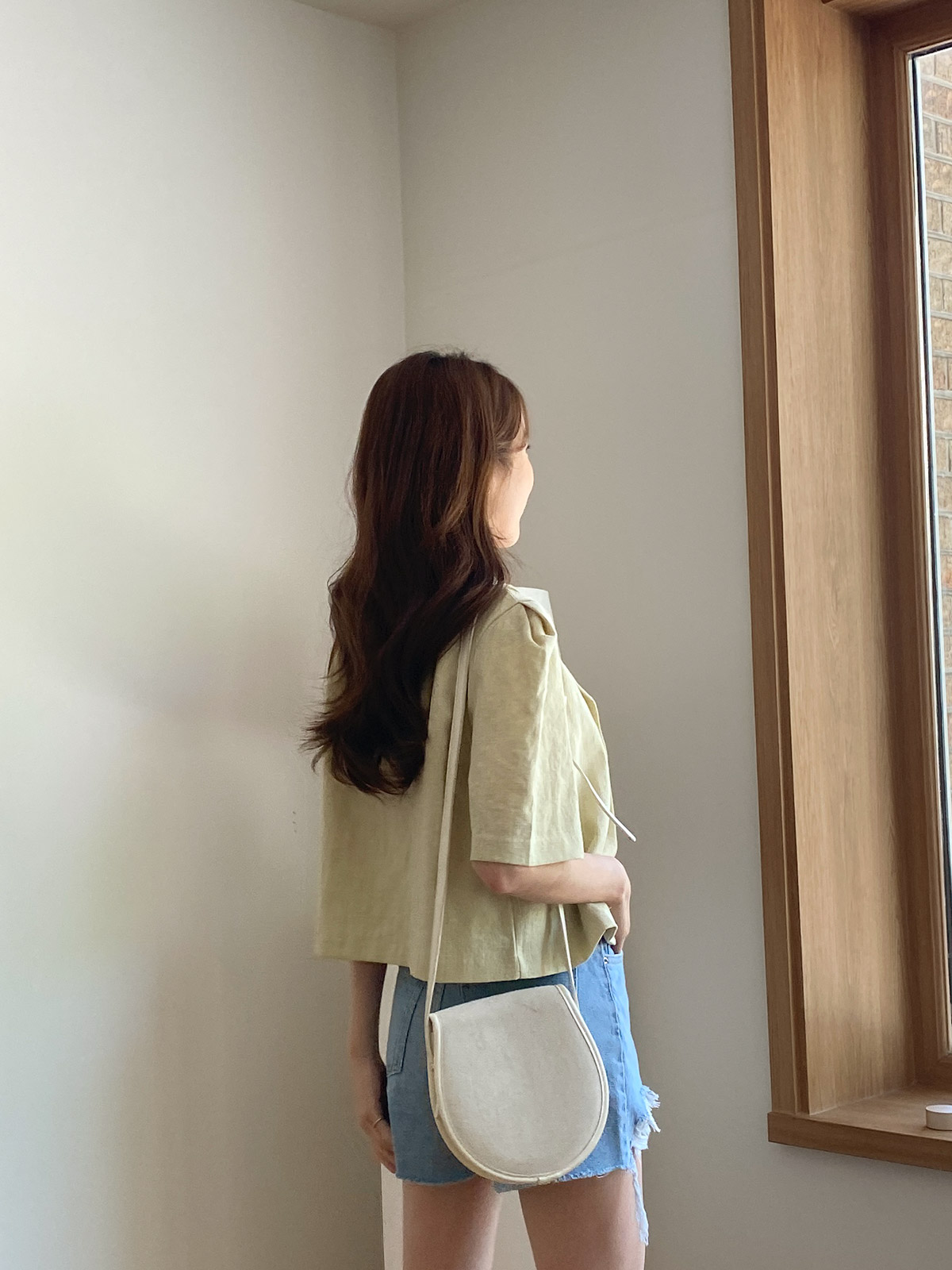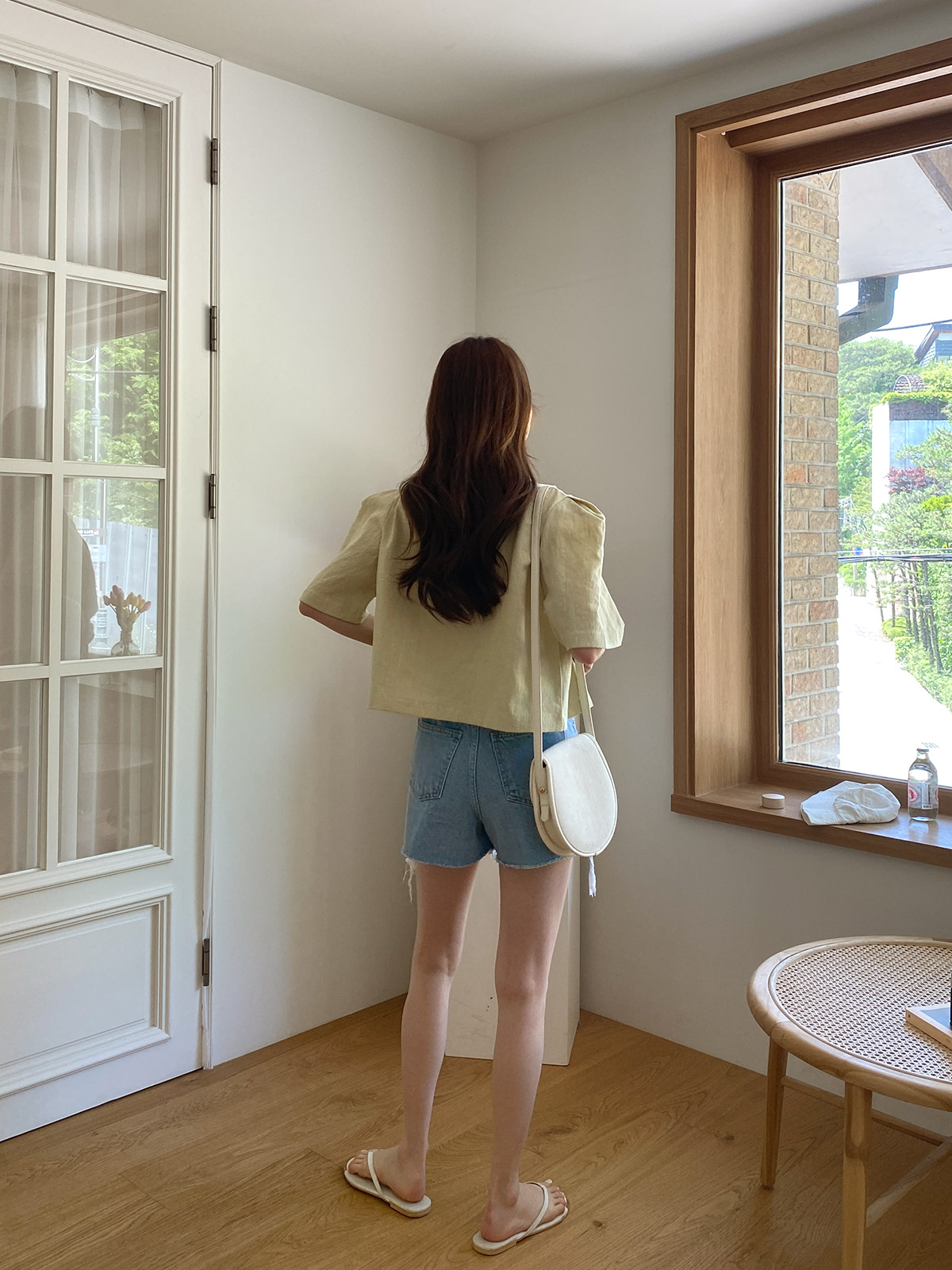 [ 리노드 크롭 린넨 퍼프 자켓]