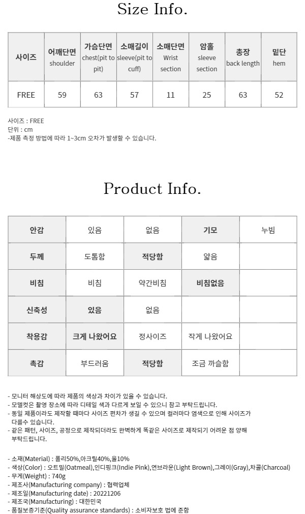 오트밀, 그레이 / Free 사이즈 착용했습니다^^