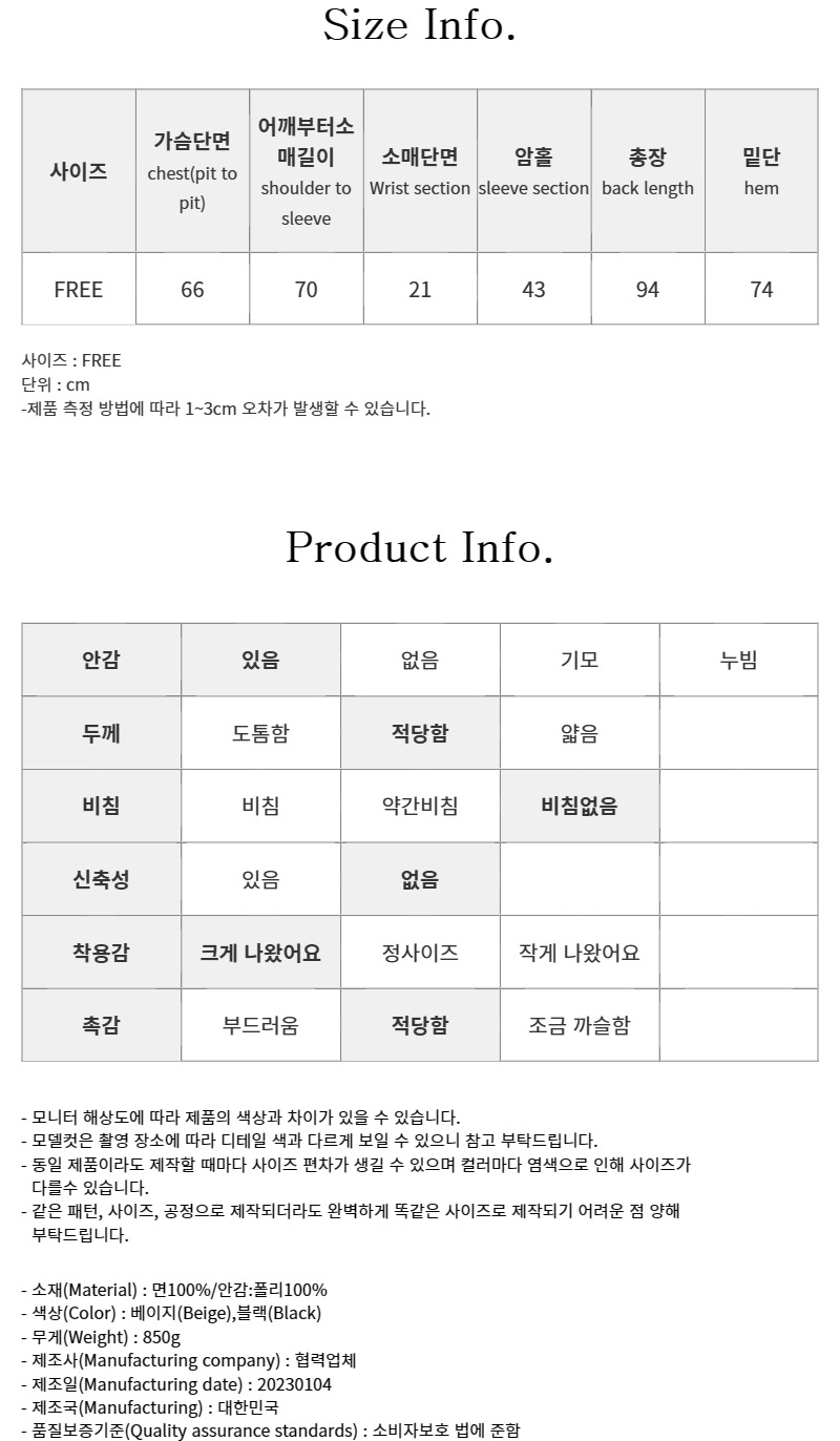 - 상품 하자, 오배송의 경우 수령일로부터 7일 이내 고객센터 접수 후 교환∙반품이 가능합니다. (교환/반품비 무료)