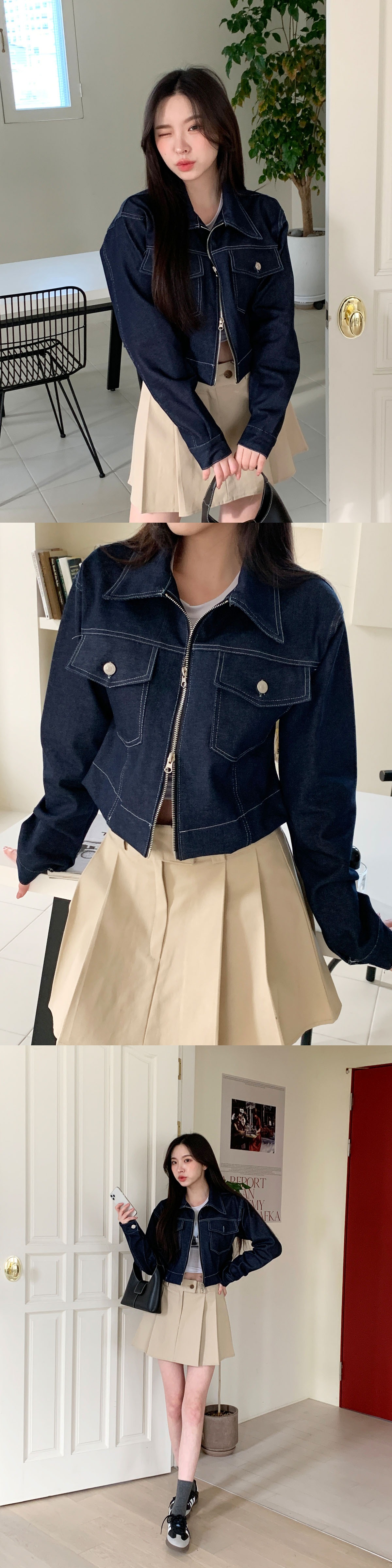 스티치자켓 크롭데님자켓 흑청자켓 진청 블랙