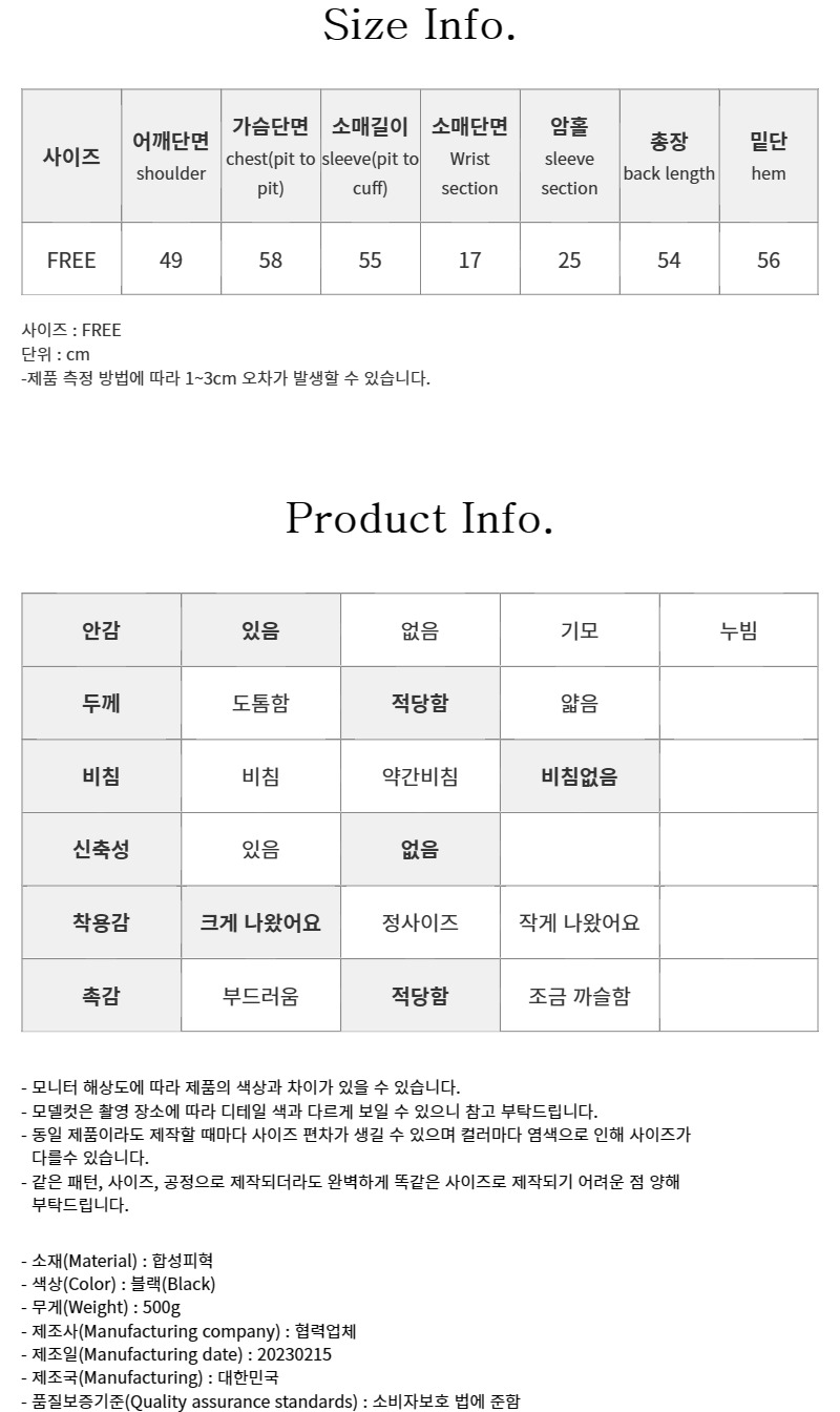 - 상품 하자, 오배송의 경우 수령일로부터 7일 이내 고객센터 접수 후 교환∙반품이 가능합니다. (교환/반품비 무료)
