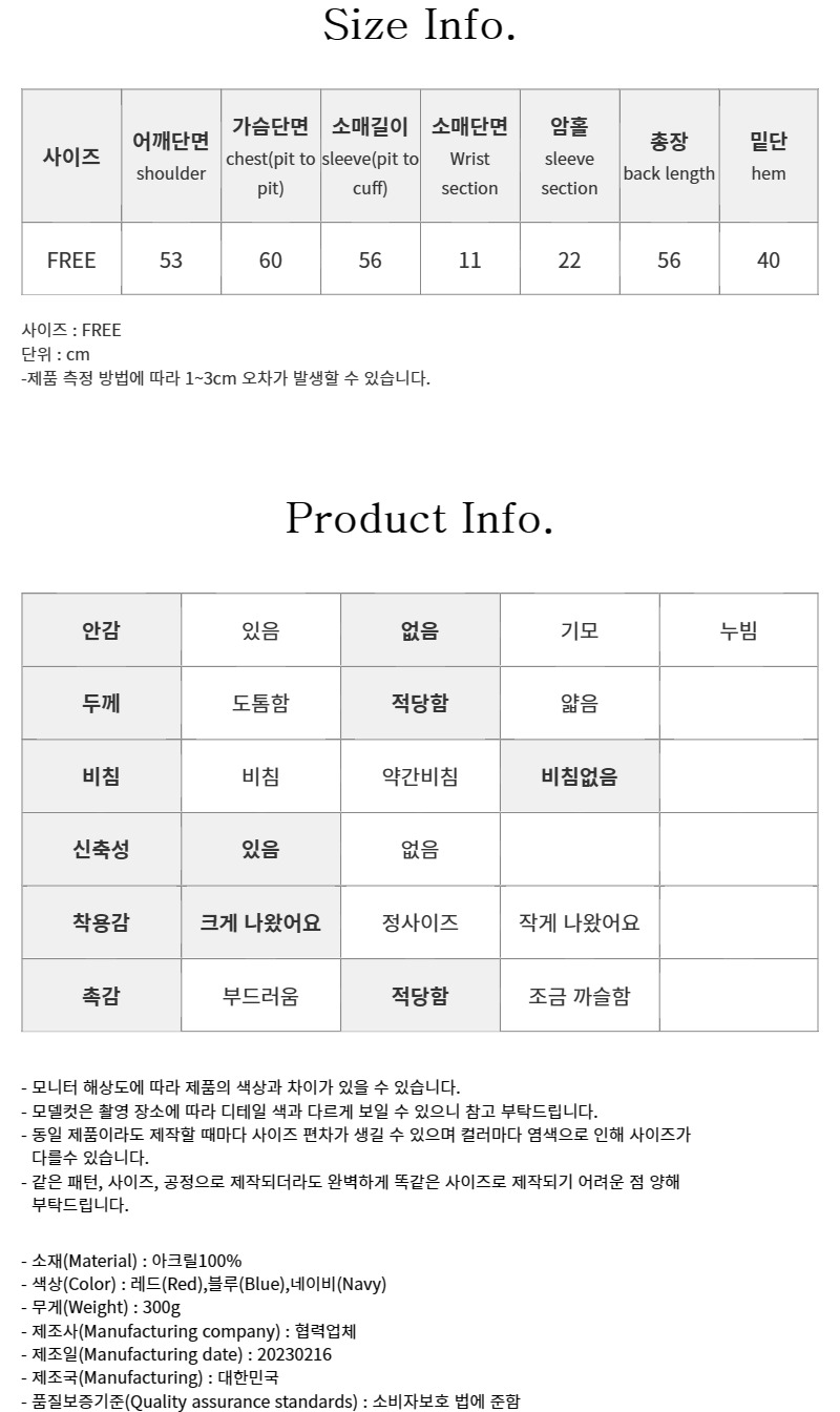 - 상품 하자, 오배송의 경우 수령일로부터 7일 이내 고객센터 접수 후 교환∙반품이 가능합니다. (교환/반품비 무료)