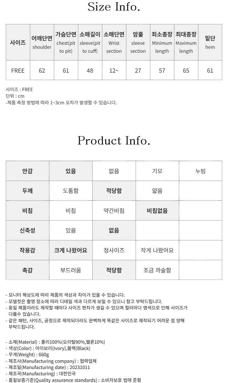 - 상품 하자, 오배송의 경우 수령일로부터 7일 이내 고객센터 접수 후 교환∙반품이 가능합니다. (교환/반품비 무료)