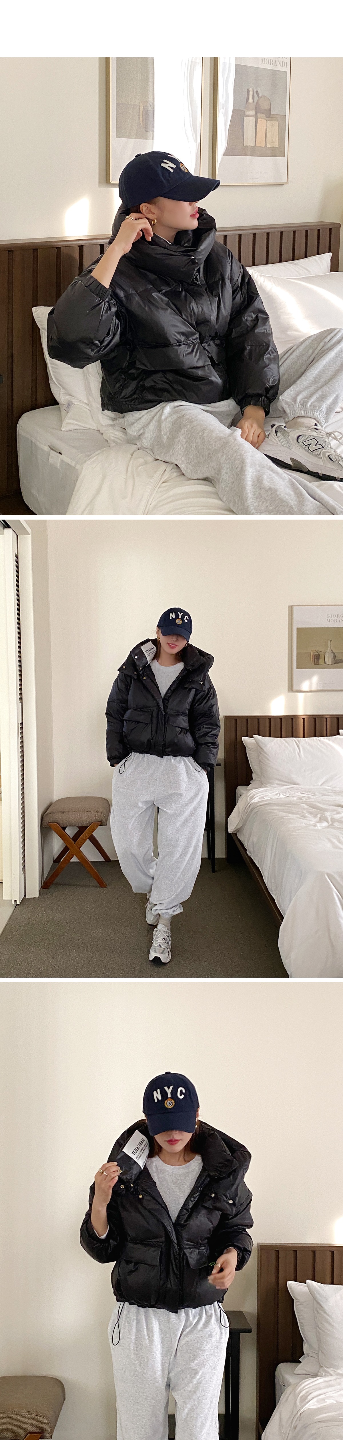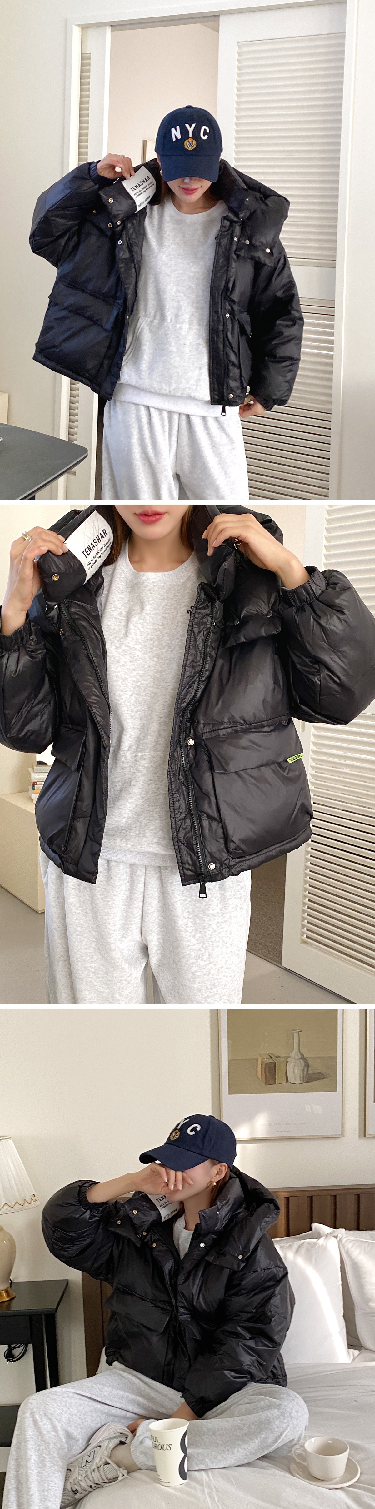 후드패딩 오버핏패딩 라벨 투포켓 겨울 여성 점퍼