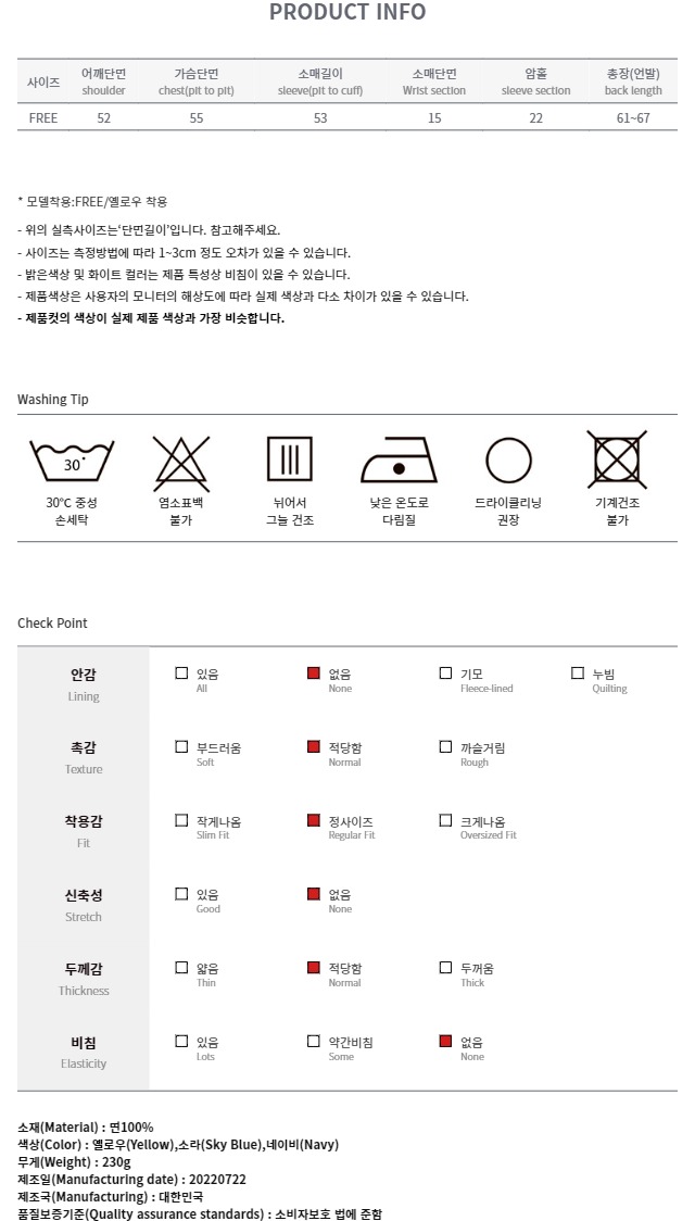 - 상품 하자, 오배송의 경우 수령일로부터 7일 이내 고객센터 접수 후 교환∙반품이 가능합니다. (교환/반품비 무료)