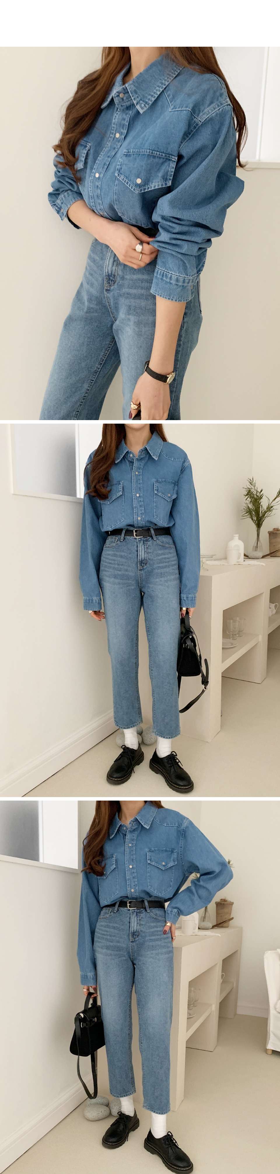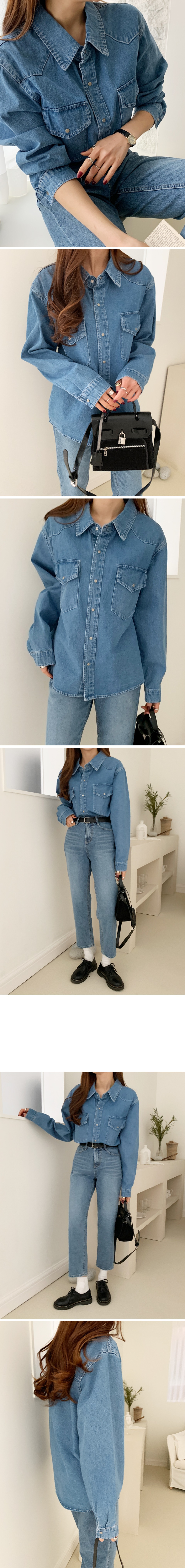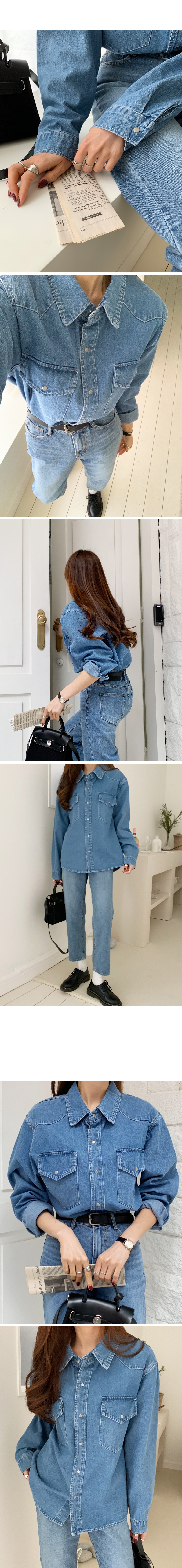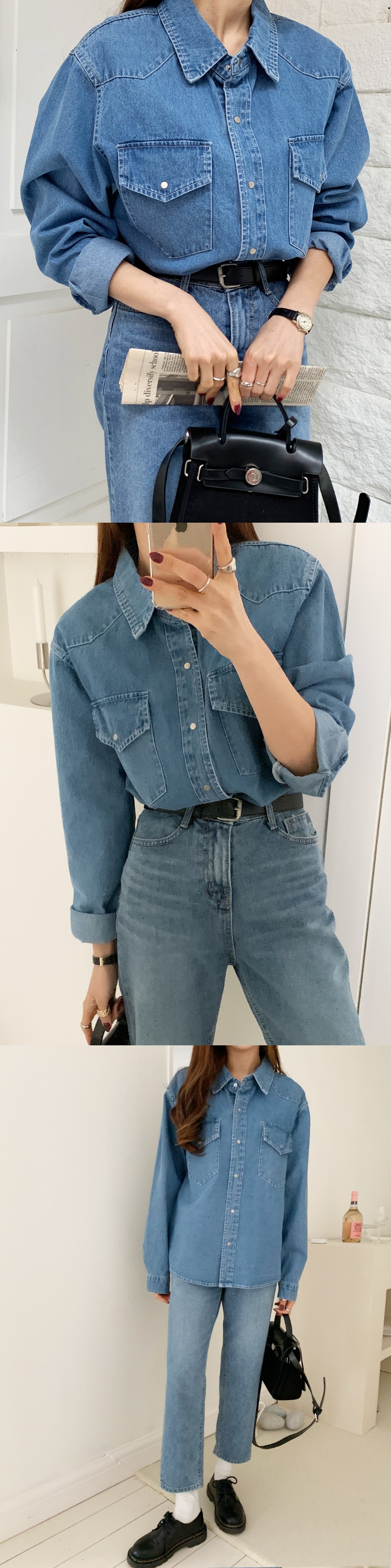 스티치 오버핏 청남방 루즈핏 카라 포켓 셔츠