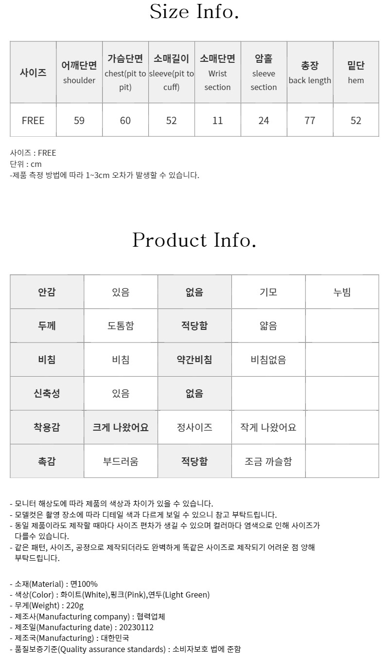 - 상품 하자, 오배송의 경우 수령일로부터 7일 이내 고객센터 접수 후 교환∙반품이 가능합니다. (교환/반품비 무료)