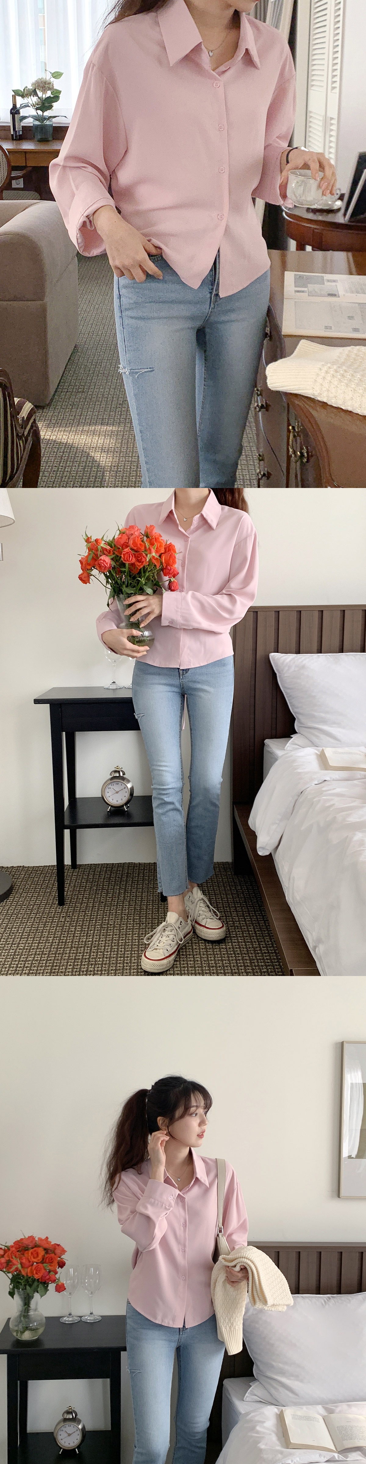 무지 언발 뒷 리본 베이직 봄 여성 카라 셔츠 남방