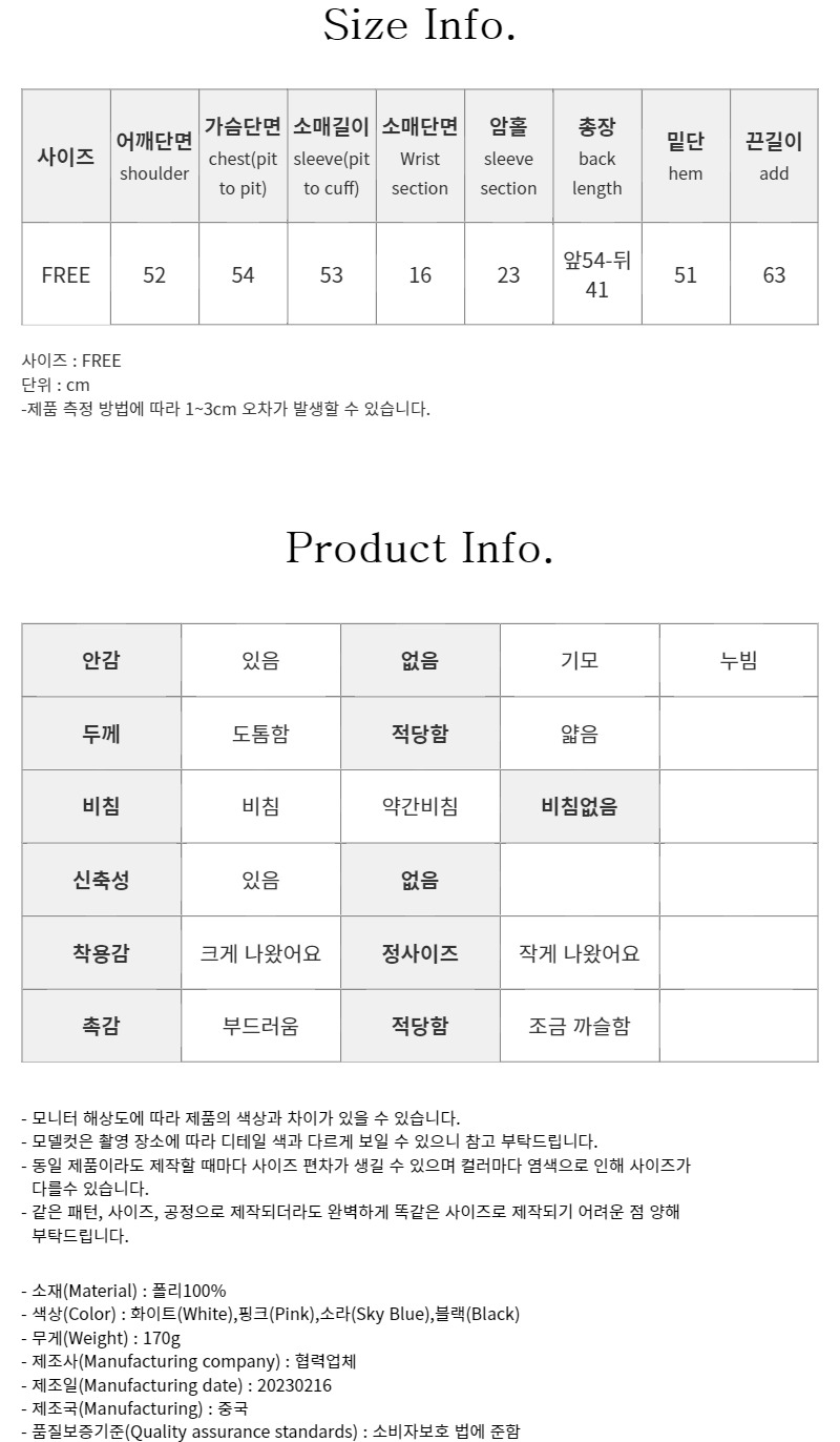 - 상품 하자, 오배송의 경우 수령일로부터 7일 이내 고객센터 접수 후 교환∙반품이 가능합니다. (교환/반품비 무료)