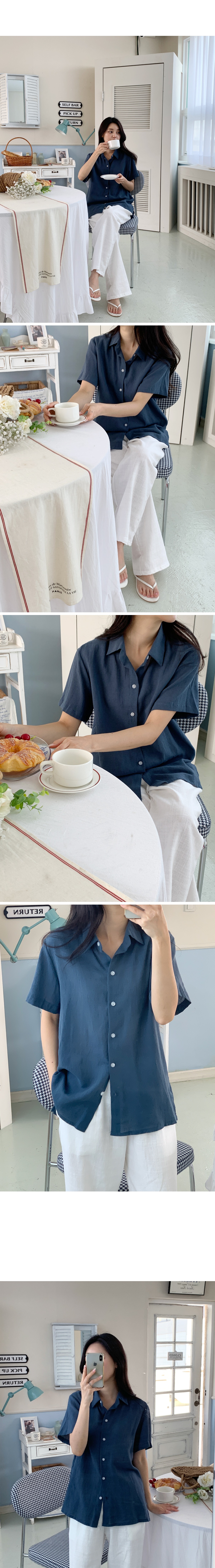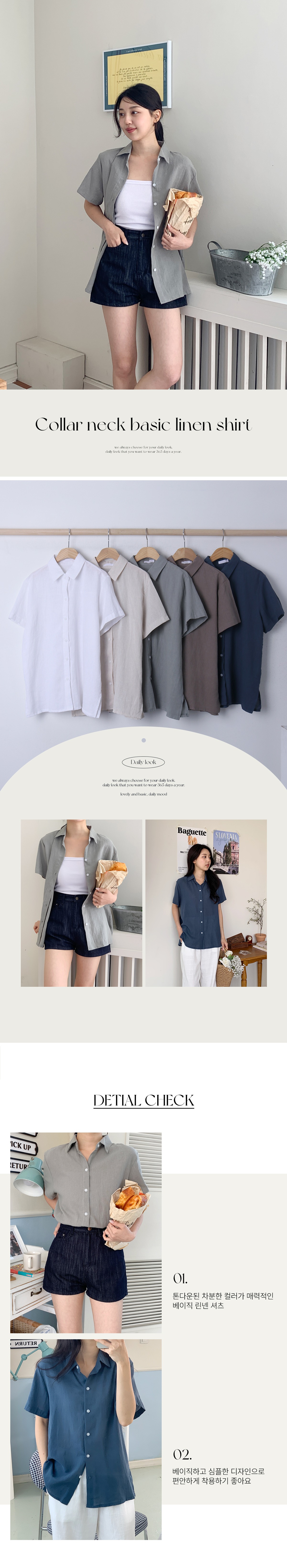 린넨셔츠 카라 베이직 무지 여름 반팔 트임셔츠