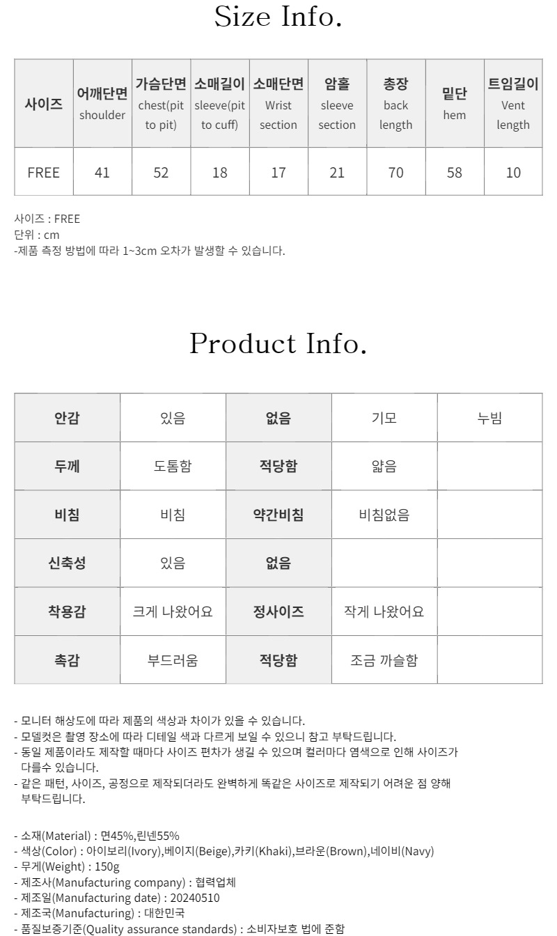카키, 네이비/ Free 사이즈 착용했습니다^^