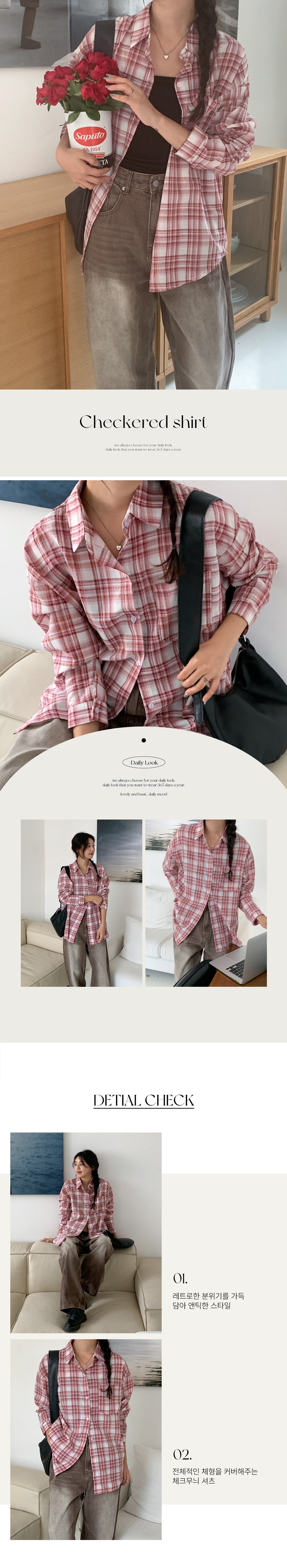 체크남방 레트로 앤틱 카라 레이어드 이너 패턴 셔츠