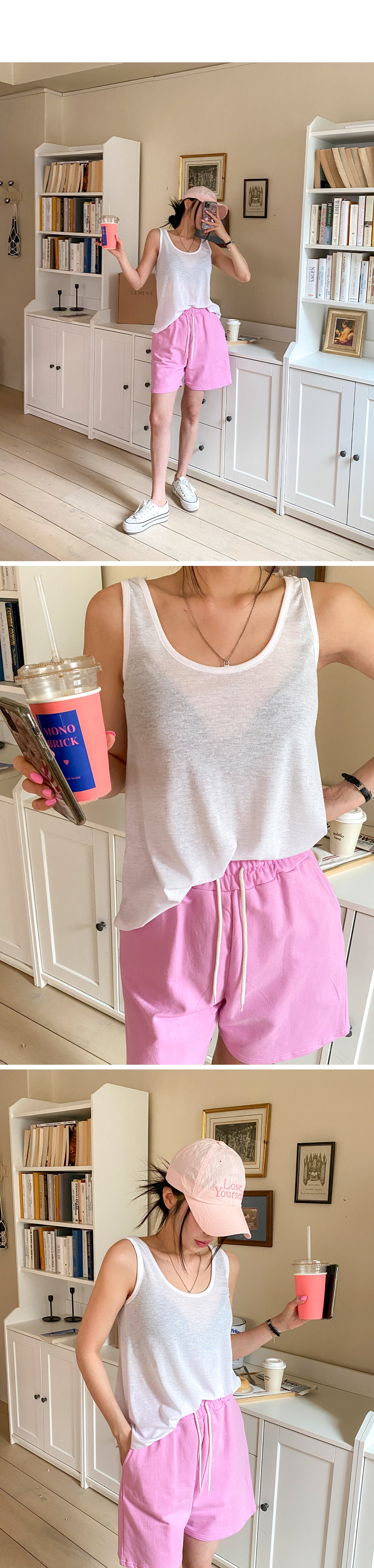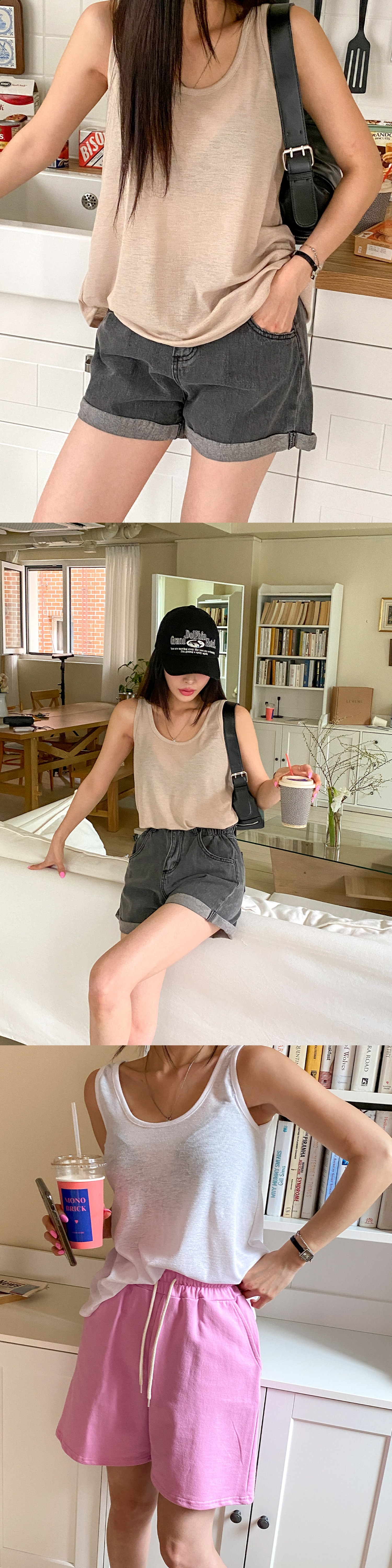 여자 린넨 나시 탑 세미 슬림 여름 여성 민소매 티셔츠 기본 이너티 레이어드티