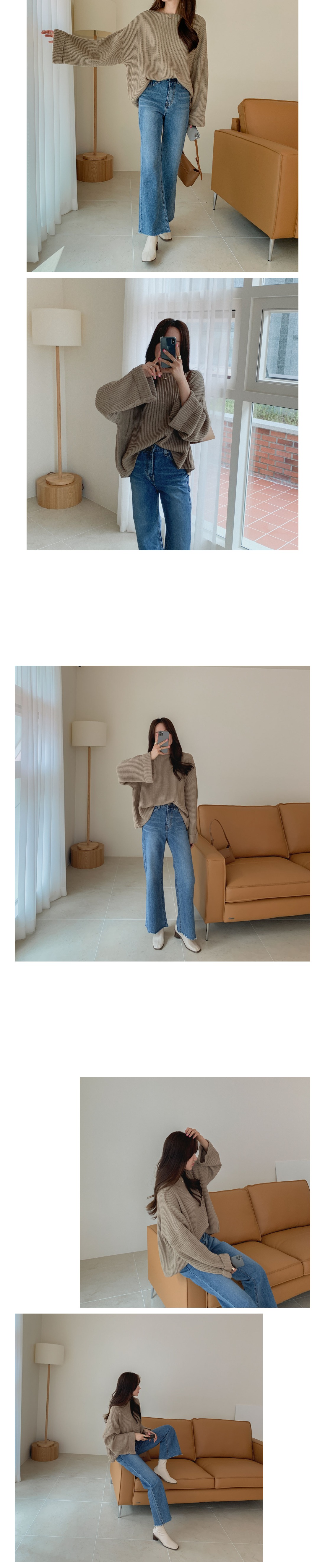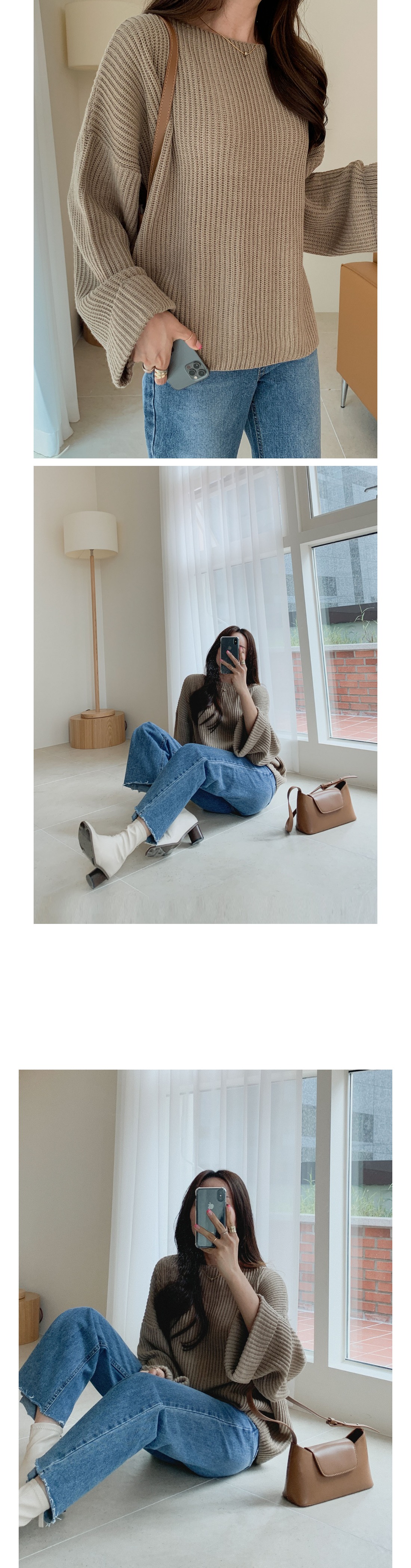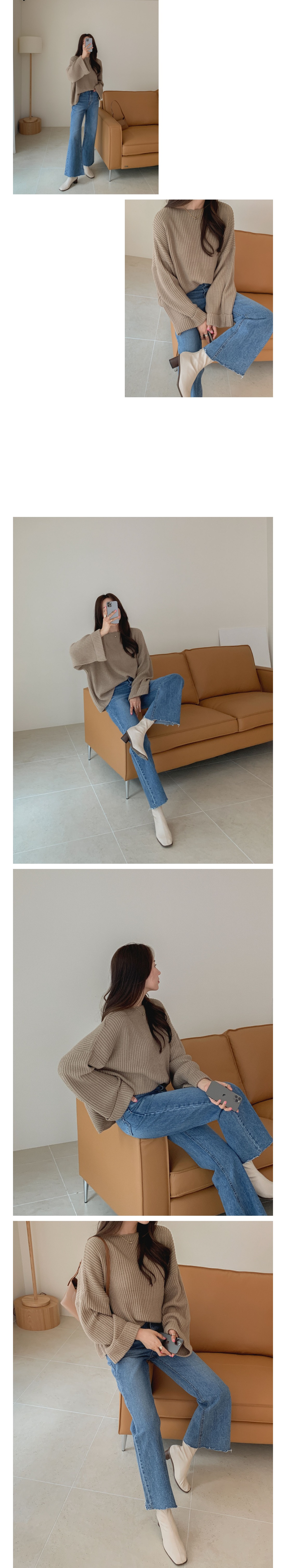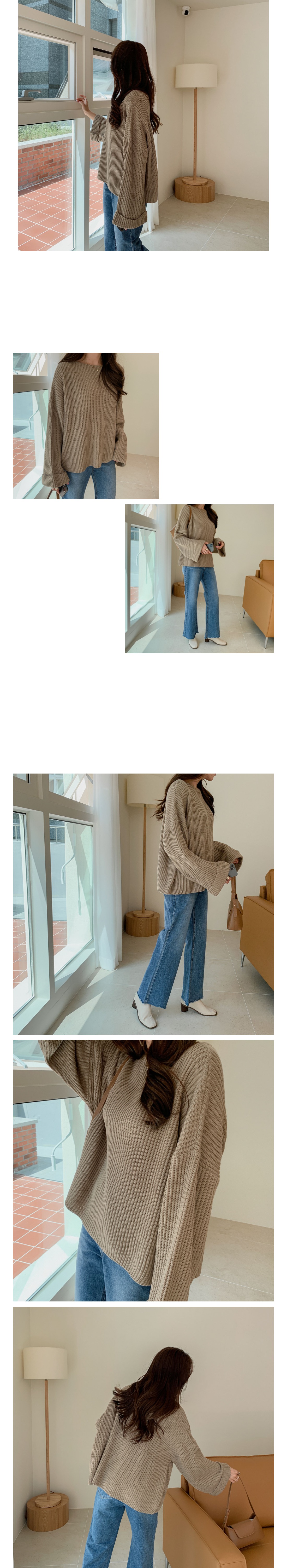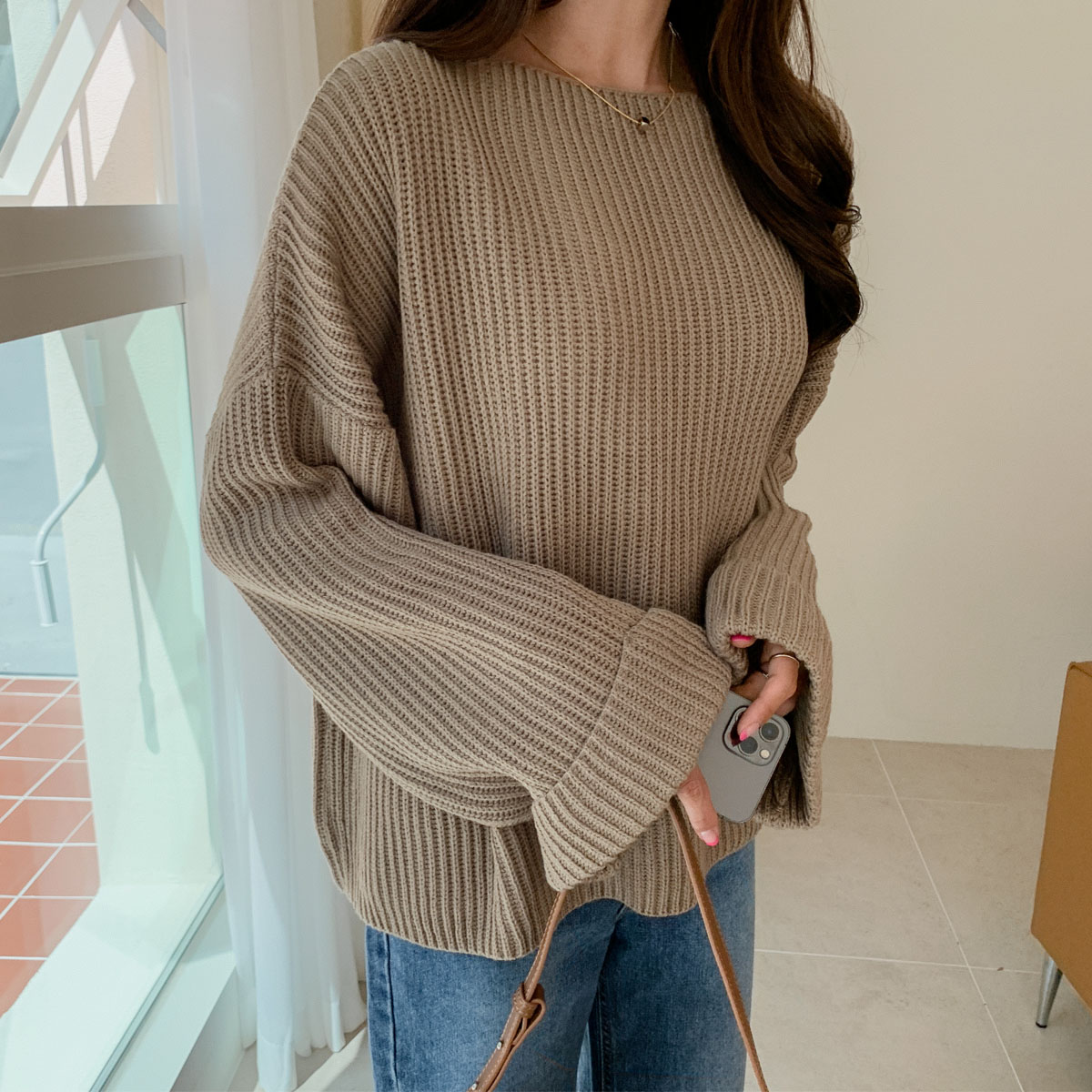 와이드 오버핏 루즈 박시 라운드 베이직 니트 아이보리 모카 핑크 그린 블랙