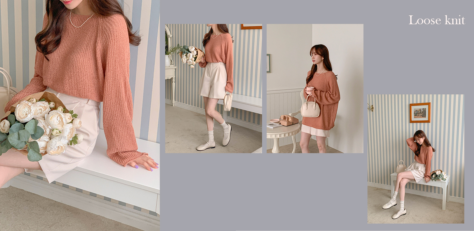 부클니트 입술넥 라운드 봄 여성 루즈핏 니트 티셔츠