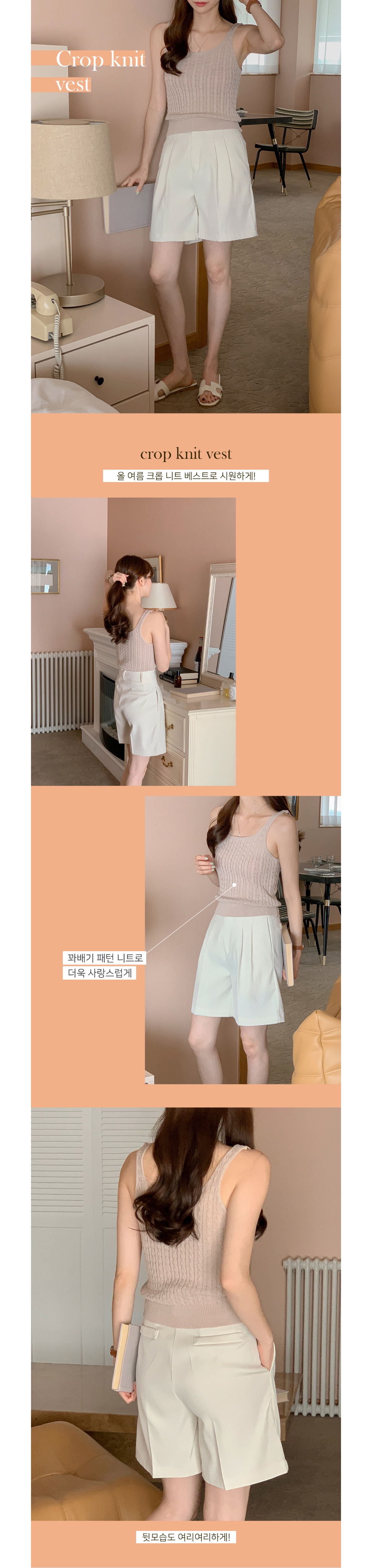 크롭 꽈배기 니트 민소매 레이어드 이너 나시 티셔츠