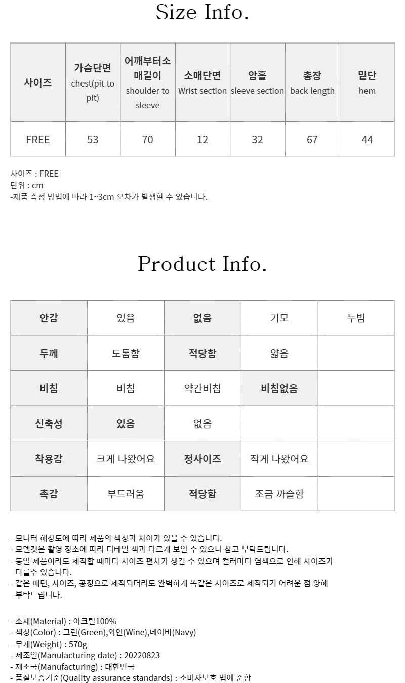 - 상품 하자, 오배송의 경우 수령일로부터 7일 이내 고객센터 접수 후 교환∙반품이 가능합니다. (교환/반품비 무료)