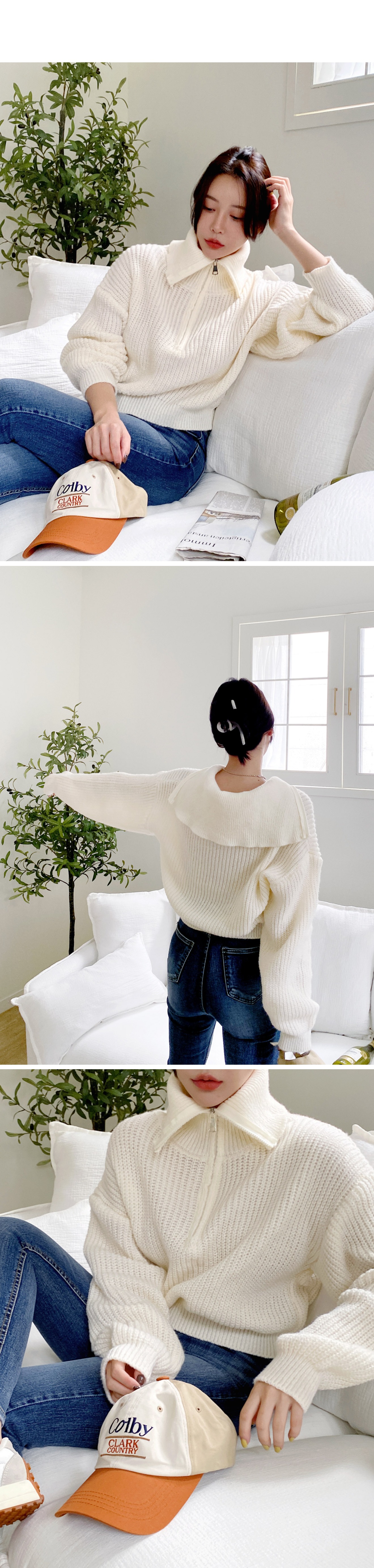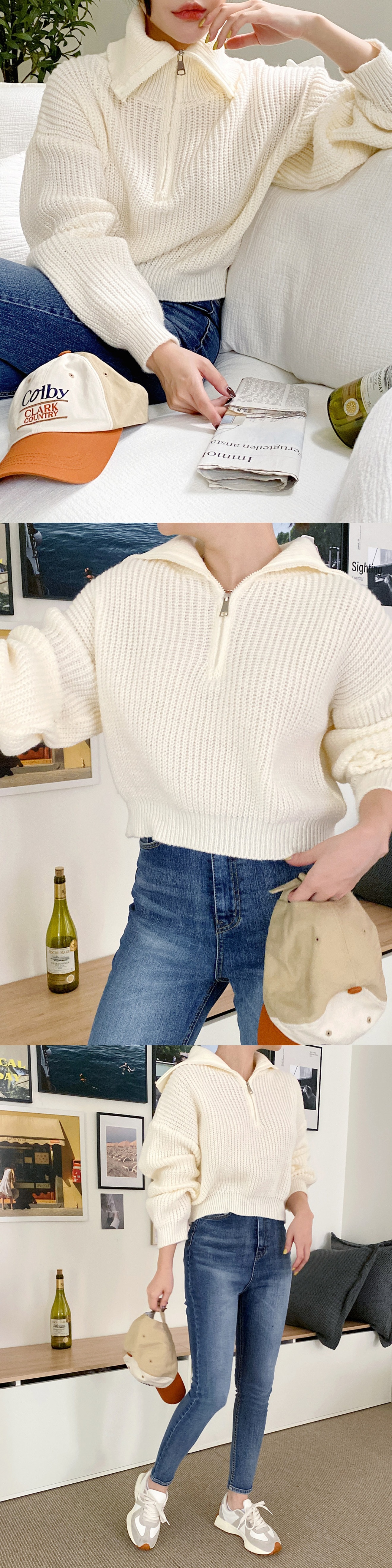 카라 반집업 크롭 가을 겨울 여성 루즈핏 박시 니트