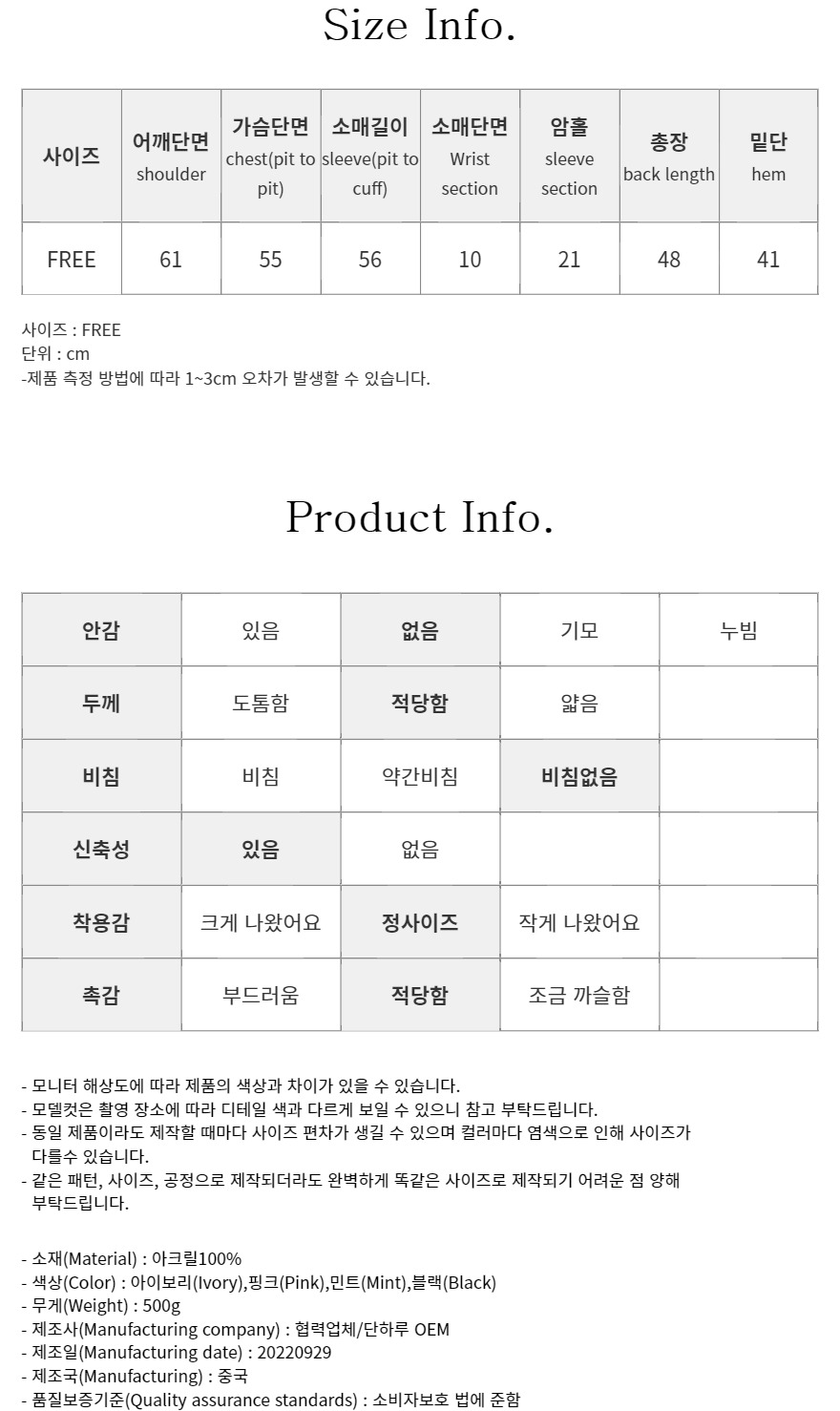 - 상품 하자, 오배송의 경우 수령일로부터 7일 이내 고객센터 접수 후 교환∙반품이 가능합니다. (교환/반품비 무료)