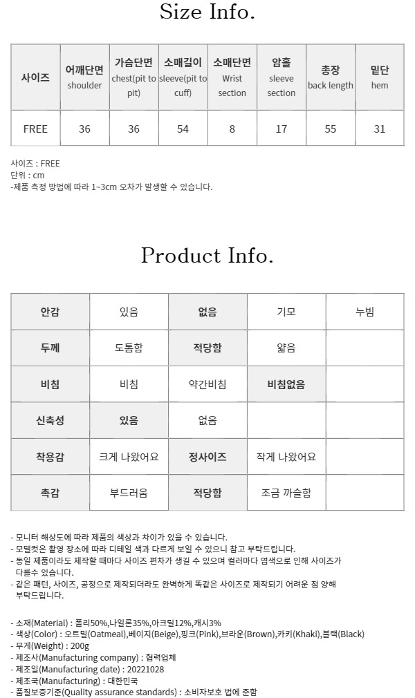 베이지,핑크,카키 / FREE 사이즈 착용했습니다^^
