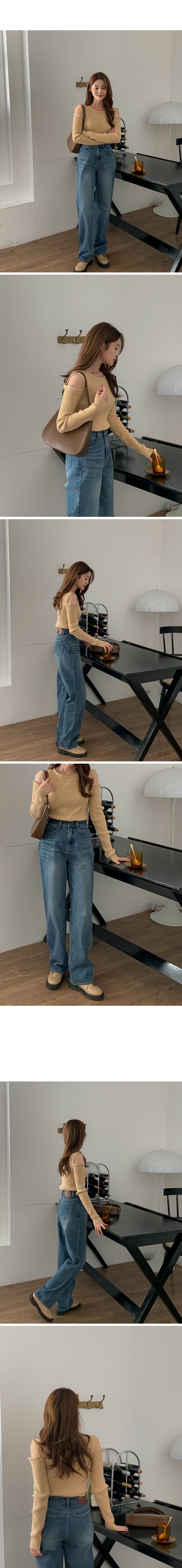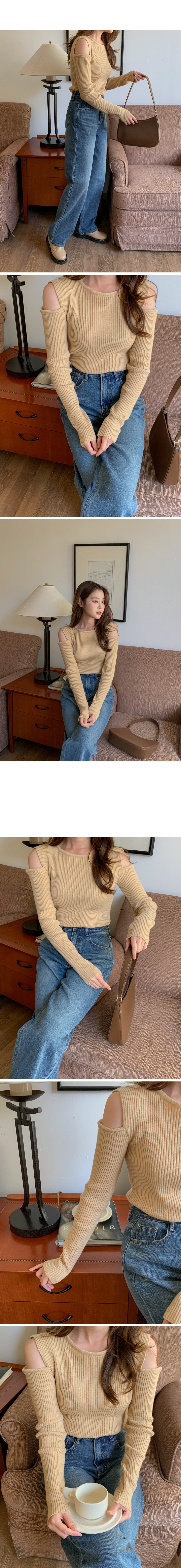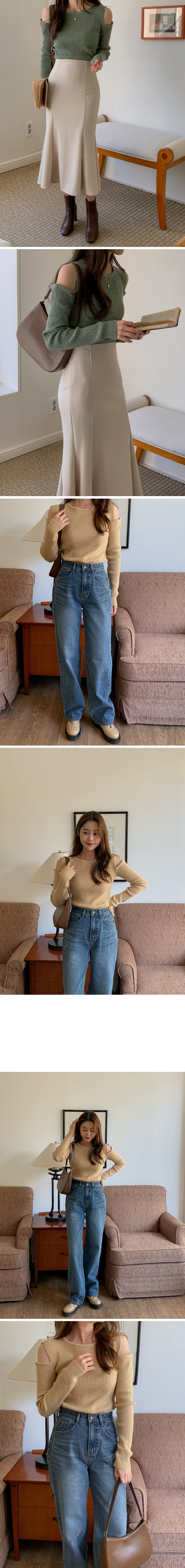 캐시미어 어깨트임 니트 골지 슬림 라운드 티셔츠