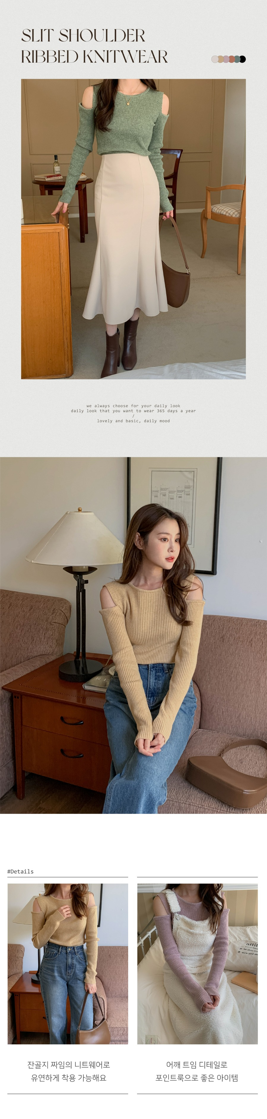 어깨 트임 포인트와 골지 디자인으로 캐주얼하게