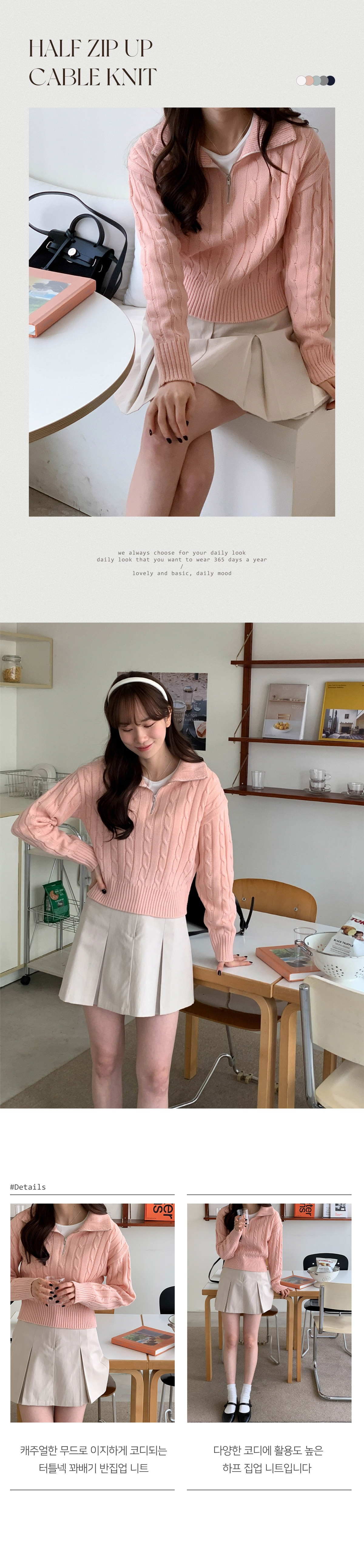 반집업 디자인과 꽈배기 짜임이 캐주얼한 무드로