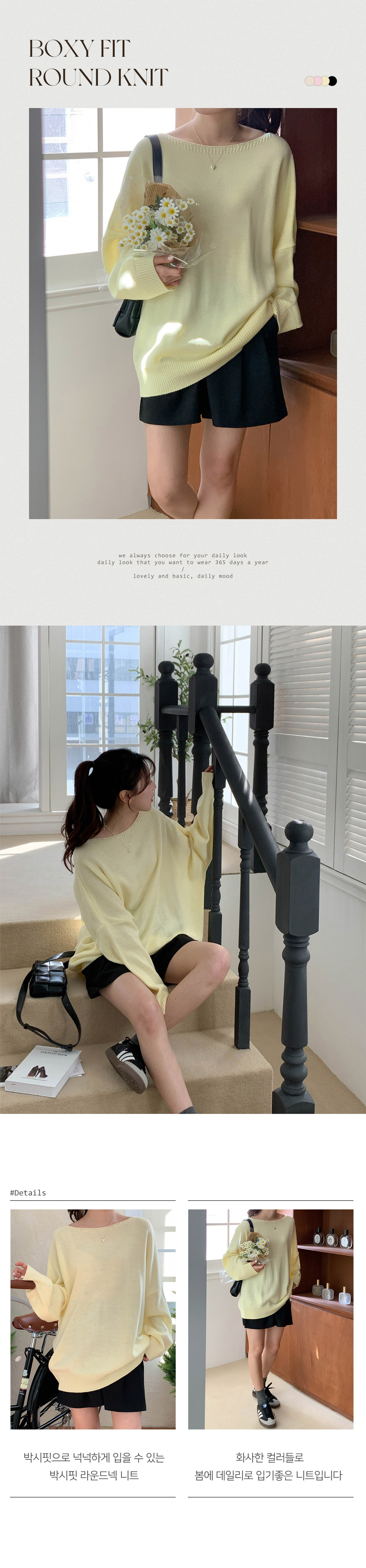 여성봄니트 입술넥니트 얇은니트 루즈핏 라운드 무지 심플