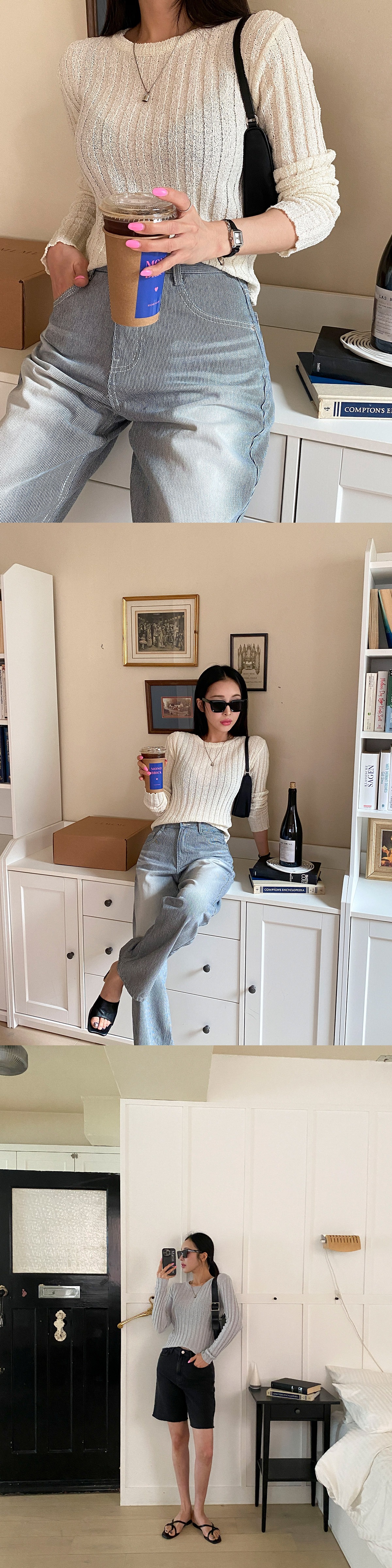 골지니트 부클니트 여성봄니트 이너 레이어드 티