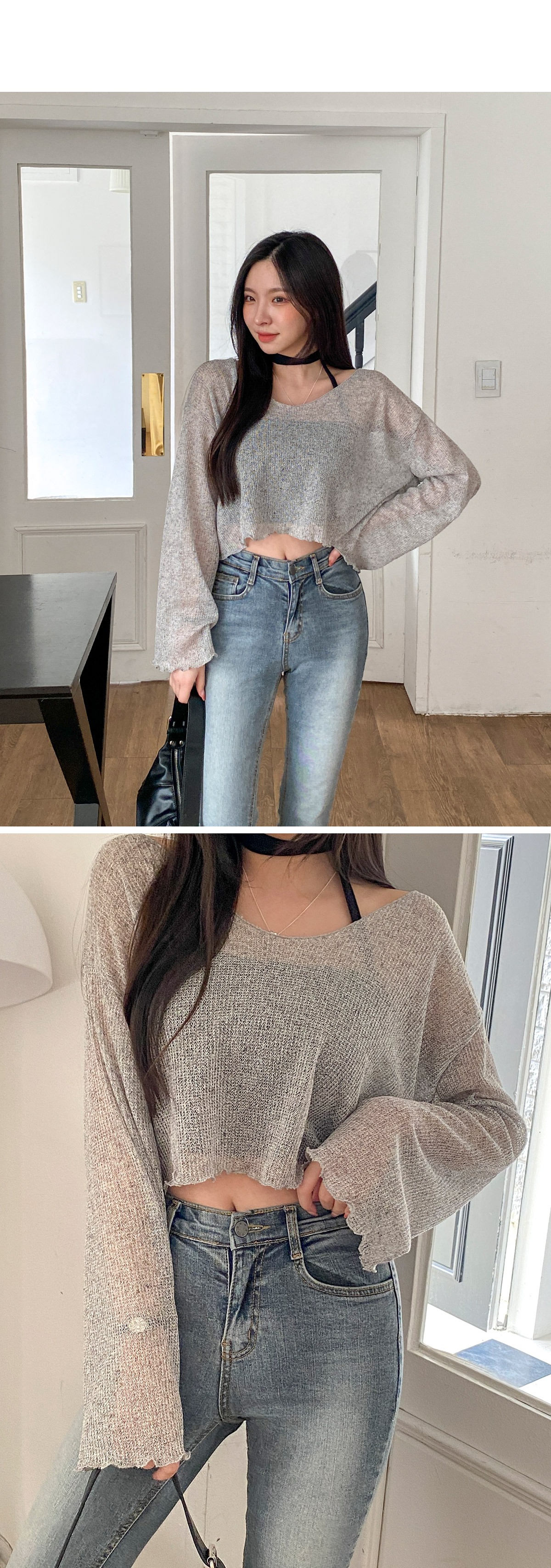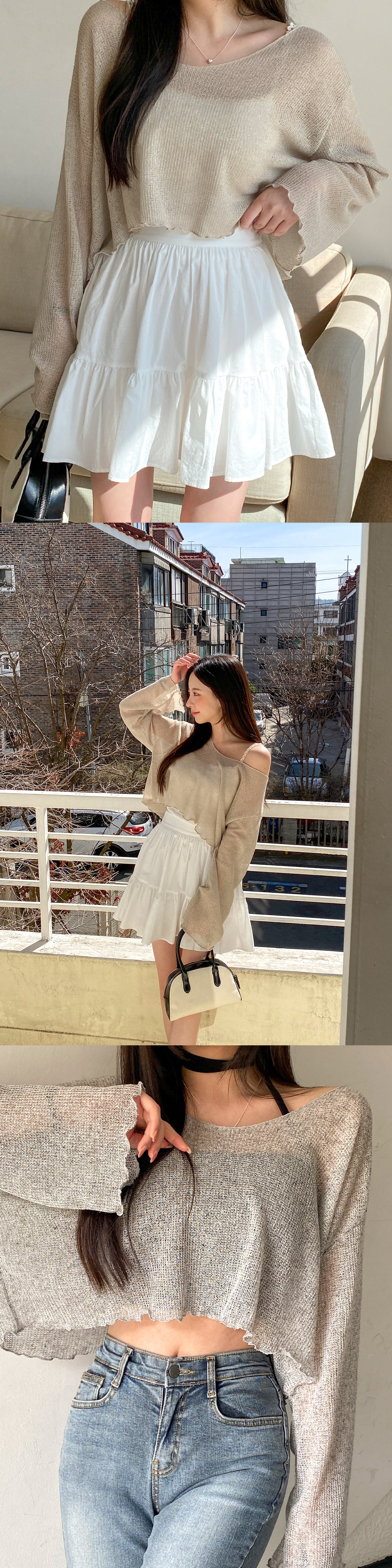 여성 봄여름 루즈핏 시스루 크롭 레이어드 얇은 니트 티