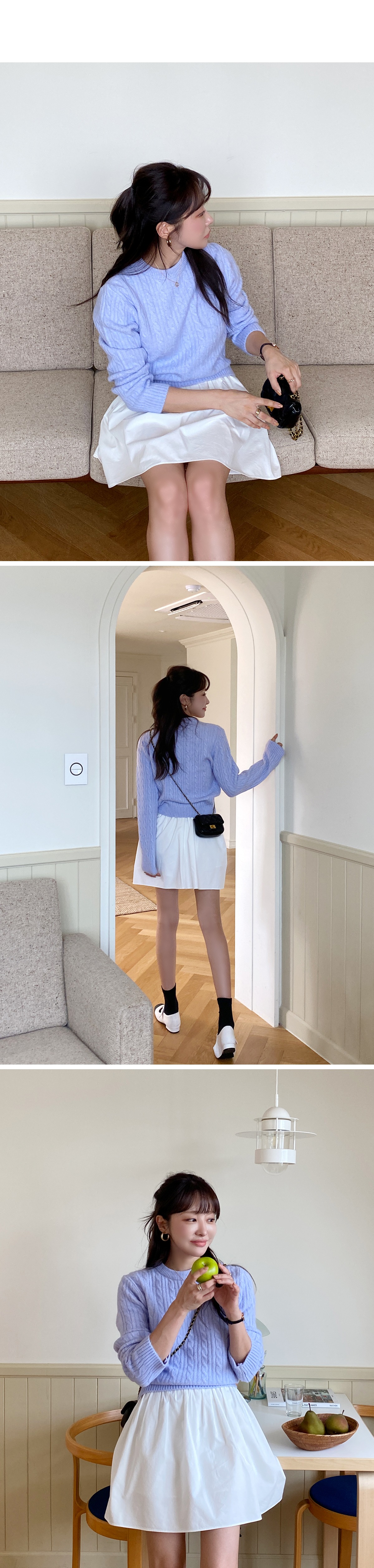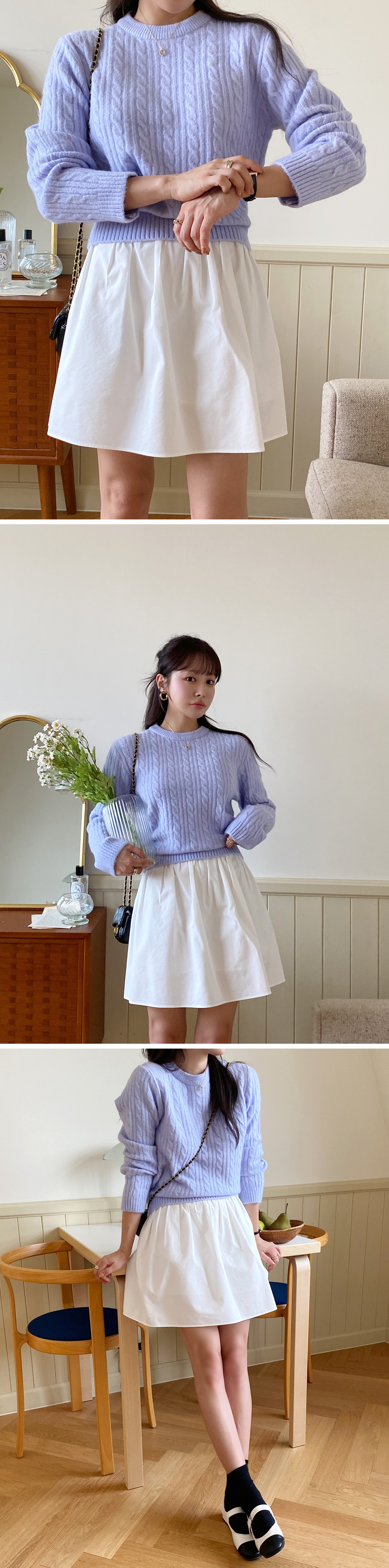 케이블니트 꽈배기니트 파스텔 라운드 긴팔 여성 니트티