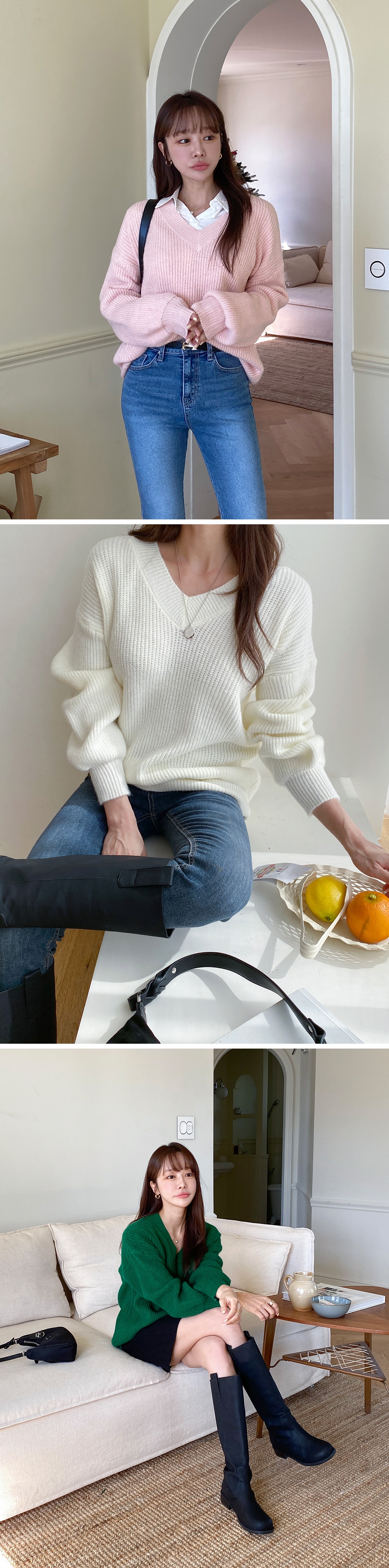 브이넥니트 가을겨울 레이어드 이너 무지 니트티